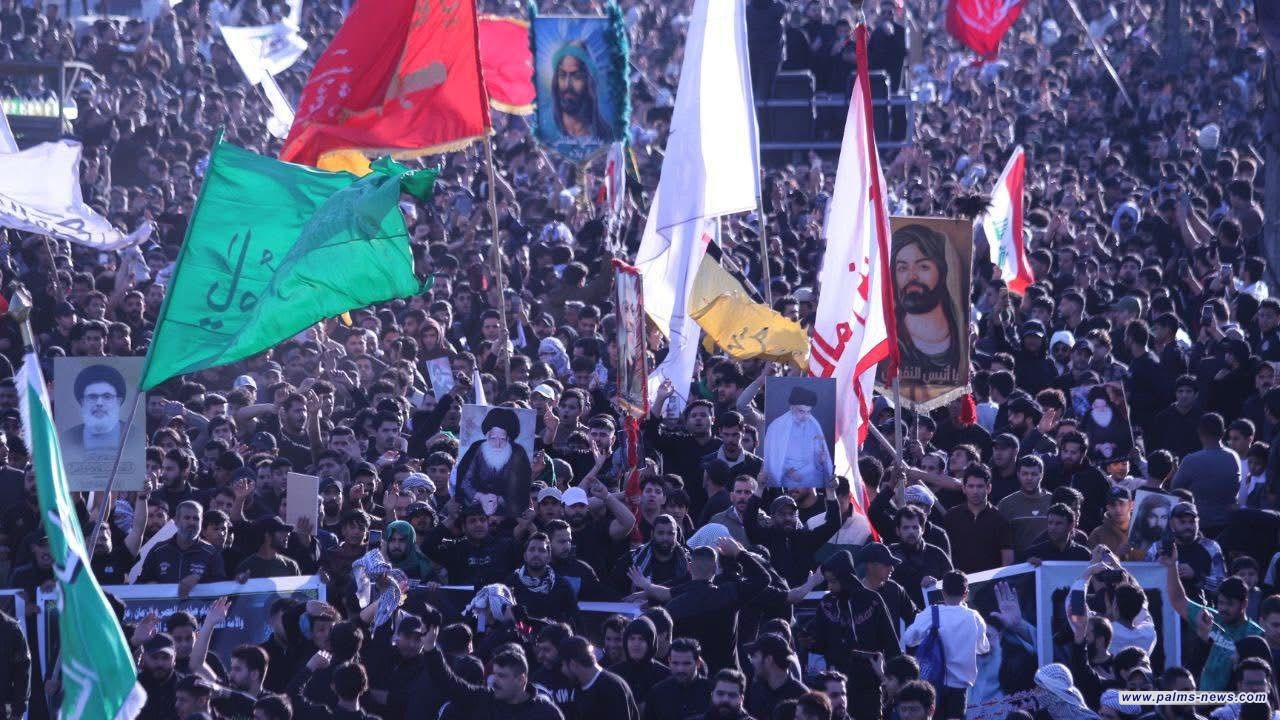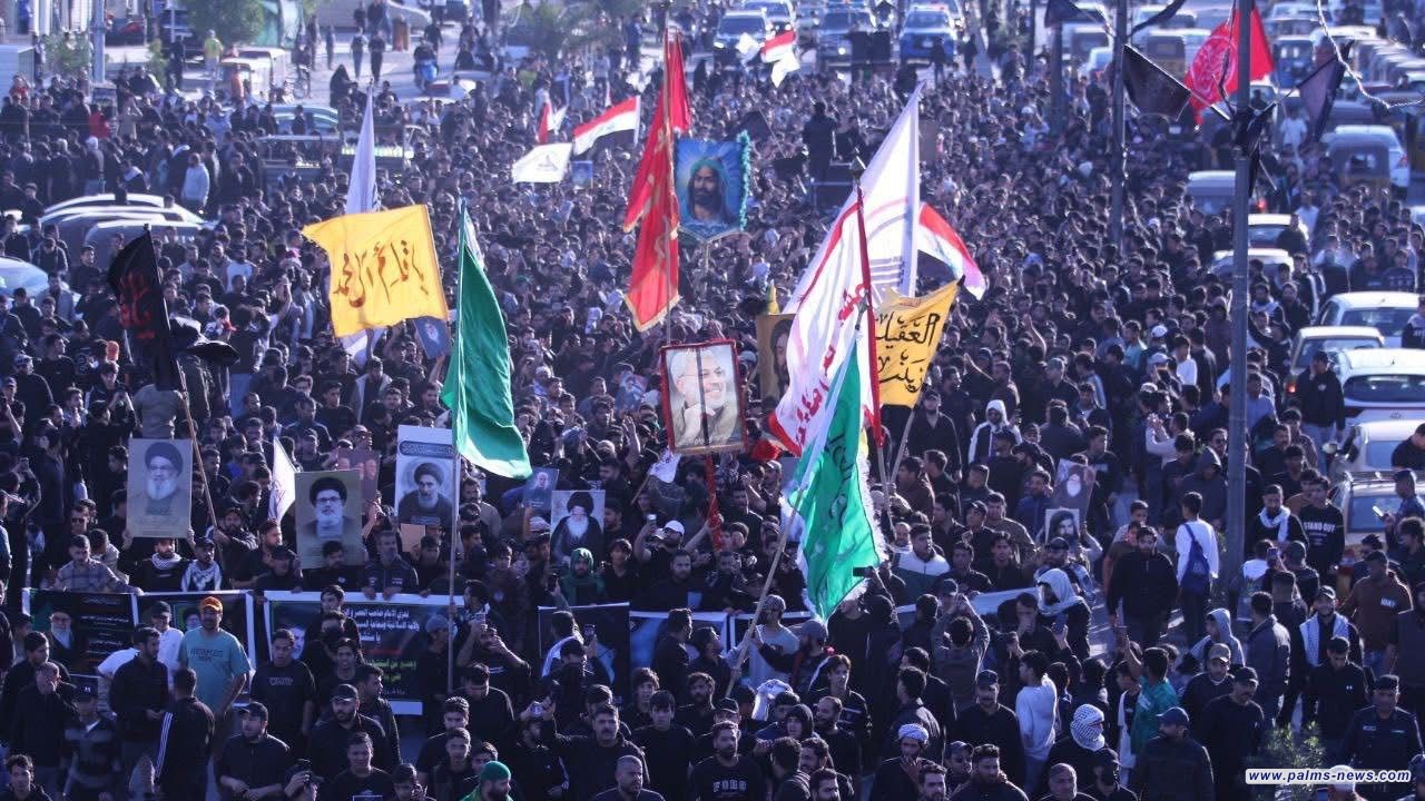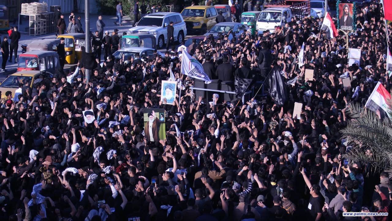 الآلاف من أبناء مدينة الصدر يشاركون في التشييع الرمزي للسيد الشهيد علي خامنئي.