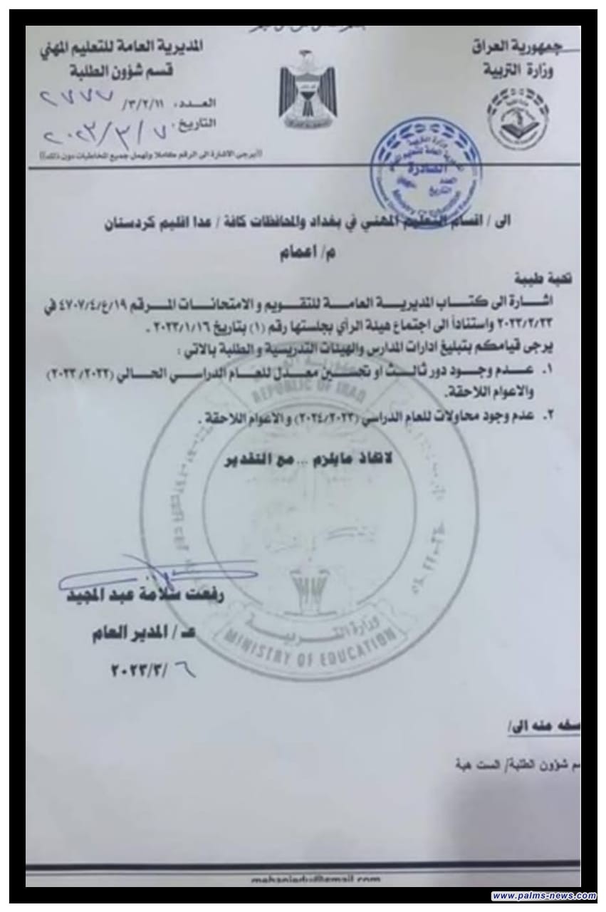 التربية تعمم بعدم وجود دور ثالث