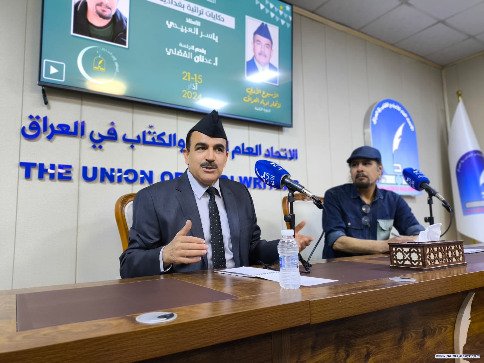 افتتحت فعاليات اليوم الثاني للأسبوع الأدبي بدورته الثانية، الذي يقيمه الاتحاد العام للأدباء والكتاب في العراق بعنوان " من السحور إلى الفطور" أمس الأحد السادس عشر من مارس، بمحاضرة عن أهمية الأدب الرقمي وأهمية التقانة في حياة الإنسان في العالم ومدى تأثيرها على الجنس الأدبي كالشعر والرواية والقصة، سيما الأجناس الفنية الأخرى، حاضر فيها الأكاديمي العراقي مشتاق عباس معن، كما تضمنت الفعاليات جلسة بعنوان " حكايات تراثية بغدادية" قدمها الشاعر عدنان الفضلي وحاضر فيها الباحث العراقي في تاريخ " القصخون، ياسر العبيدي، الذي استعرض الحكايات البغدادية القديمة وتأثيرها في المجتمع كما استعرض تاريخ الأمثال البغدادية التي أصبحت فيما بعد شائعة ومتداولة ويتناقلها الناس في حياتهم اليومية.
