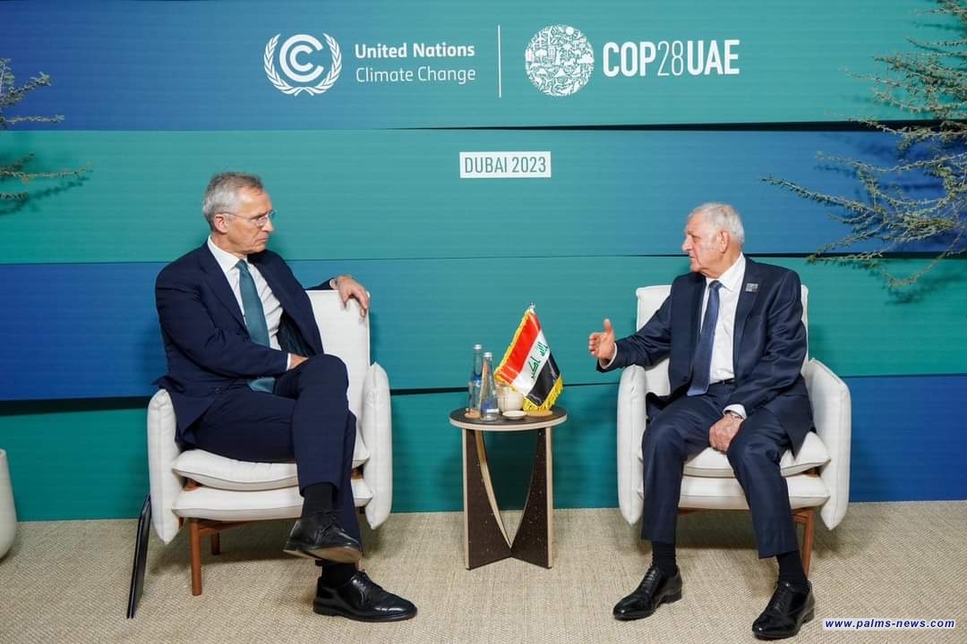 أكد الرئيس العراقي عبد اللطيف جمال رشيد، اليوم الجمعة الأول من نوفمبر، خلا لقائه الأمين العام لحلف شمال الأطلسي ينس ستولنبيرغ، على هامش حضوره أعمال مؤتمر قمة الأمم المتحدة للمناخ (كوب 28) في الإمارات، على ضرورة اتخاذ موقف دولي ضد الانتهاكات بحق الشعب الفلسطيني.