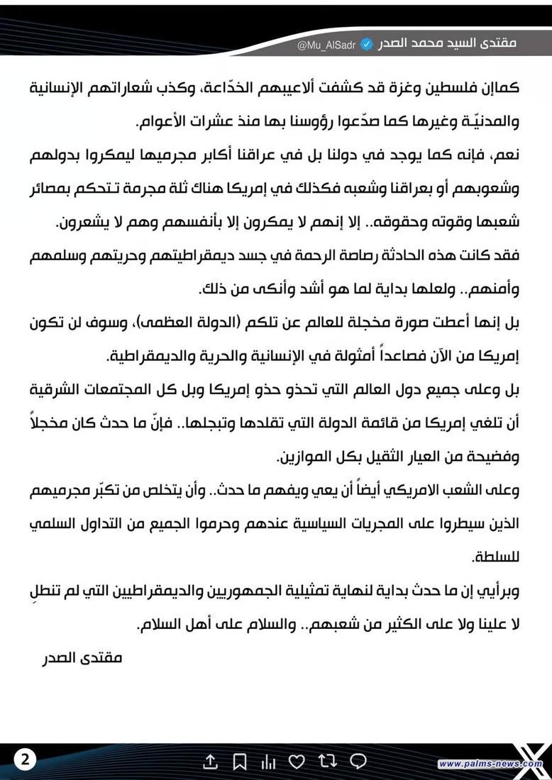 الصدر : محاولة اغتيال ترامب كشفت زيف ادعاءات الدولة