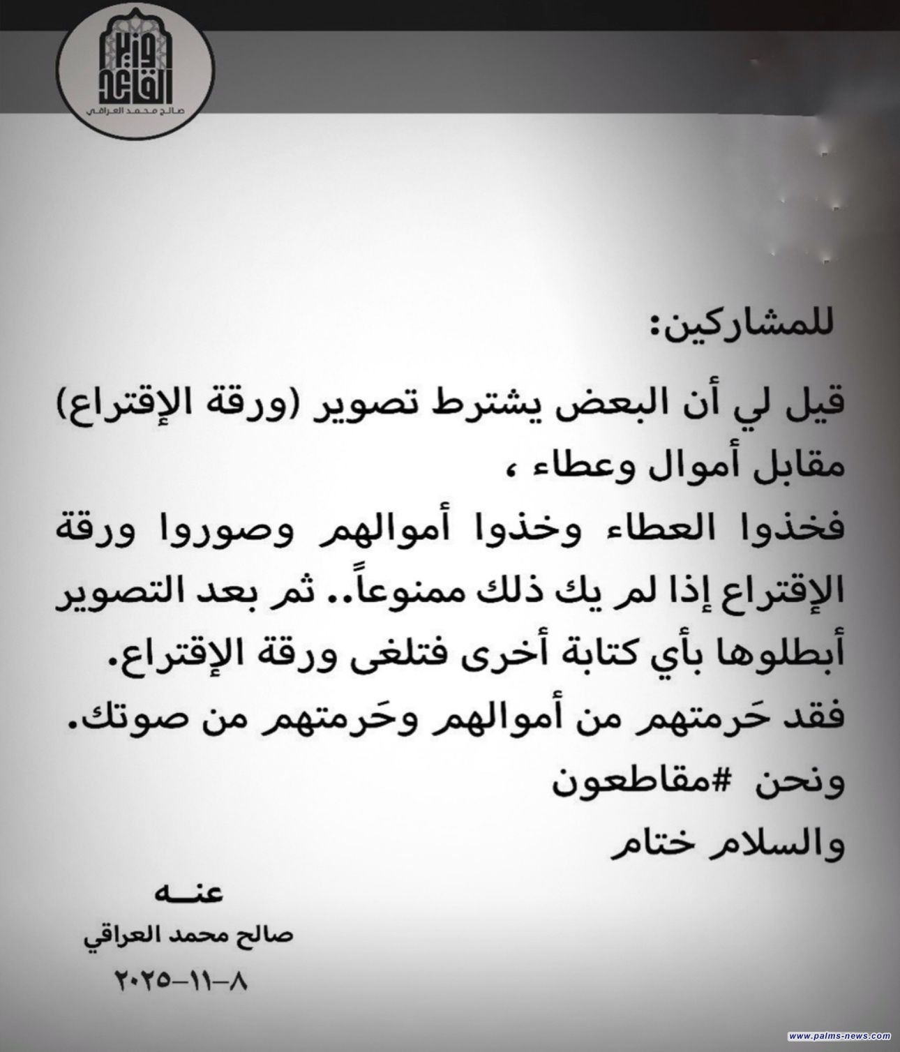 الصدر يحذر من شراء الأصوات: خذوا أموالهم وأبطلوا ورقة الاقتراع.