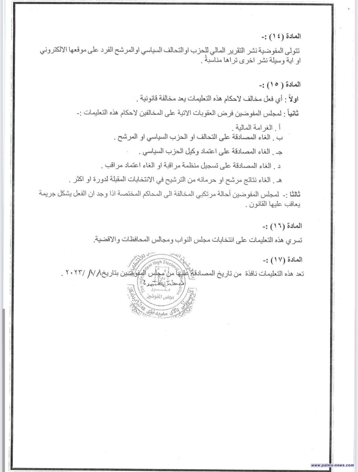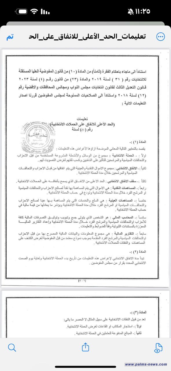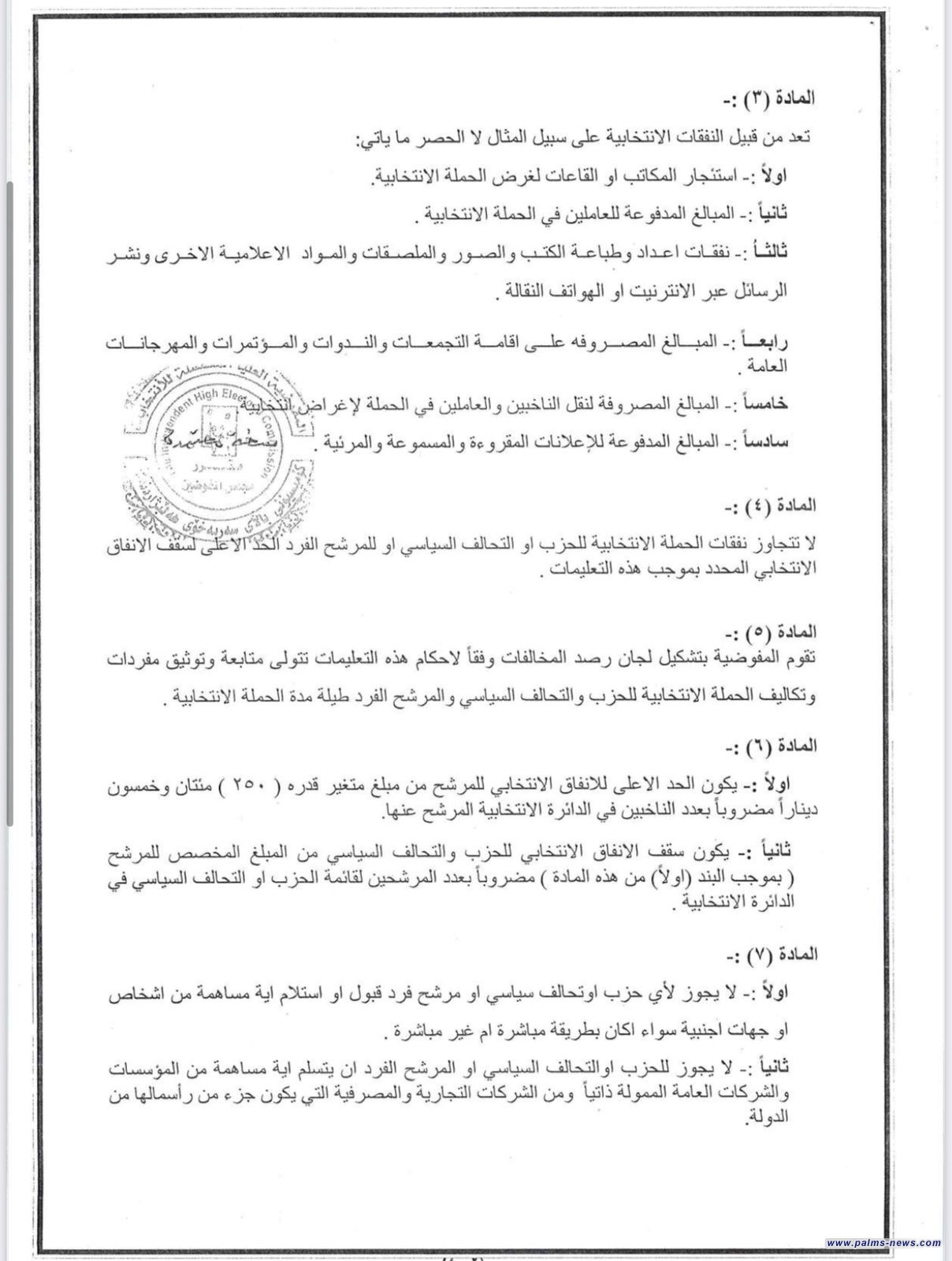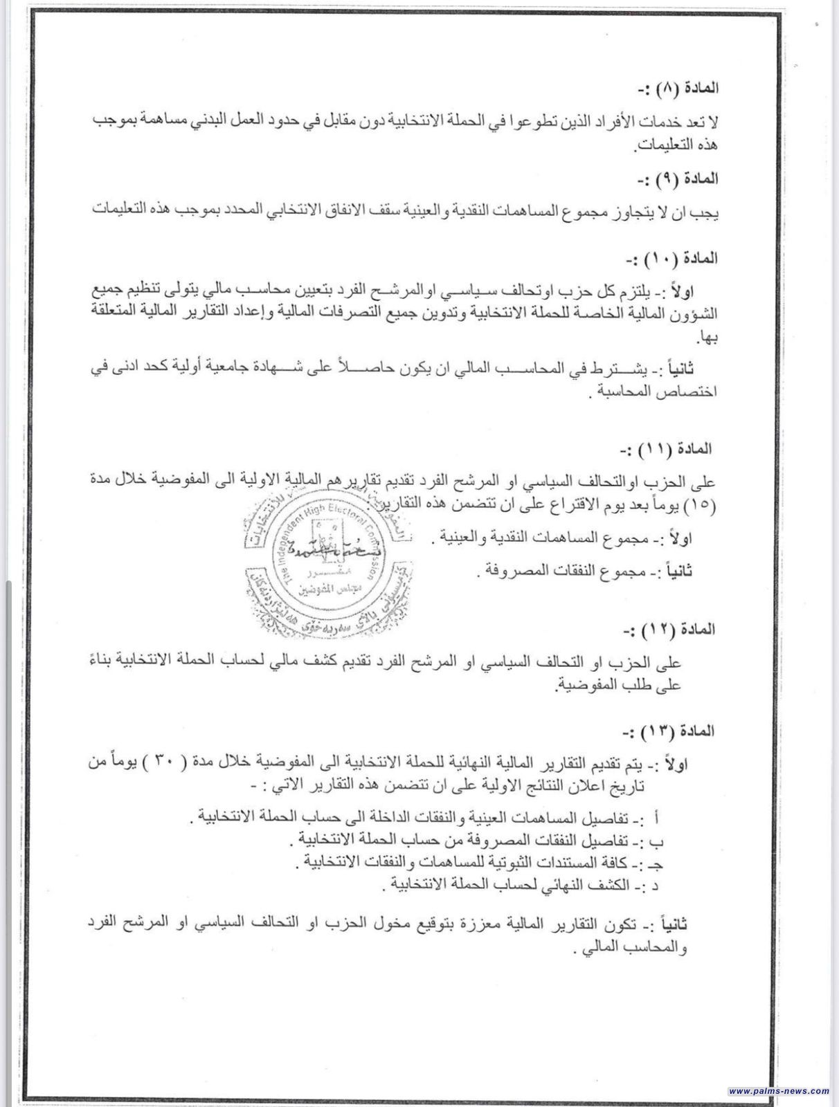 المفوضية تعلن تعليمات الحد الأعلى للإنفاق على الحملات الانتخابية.