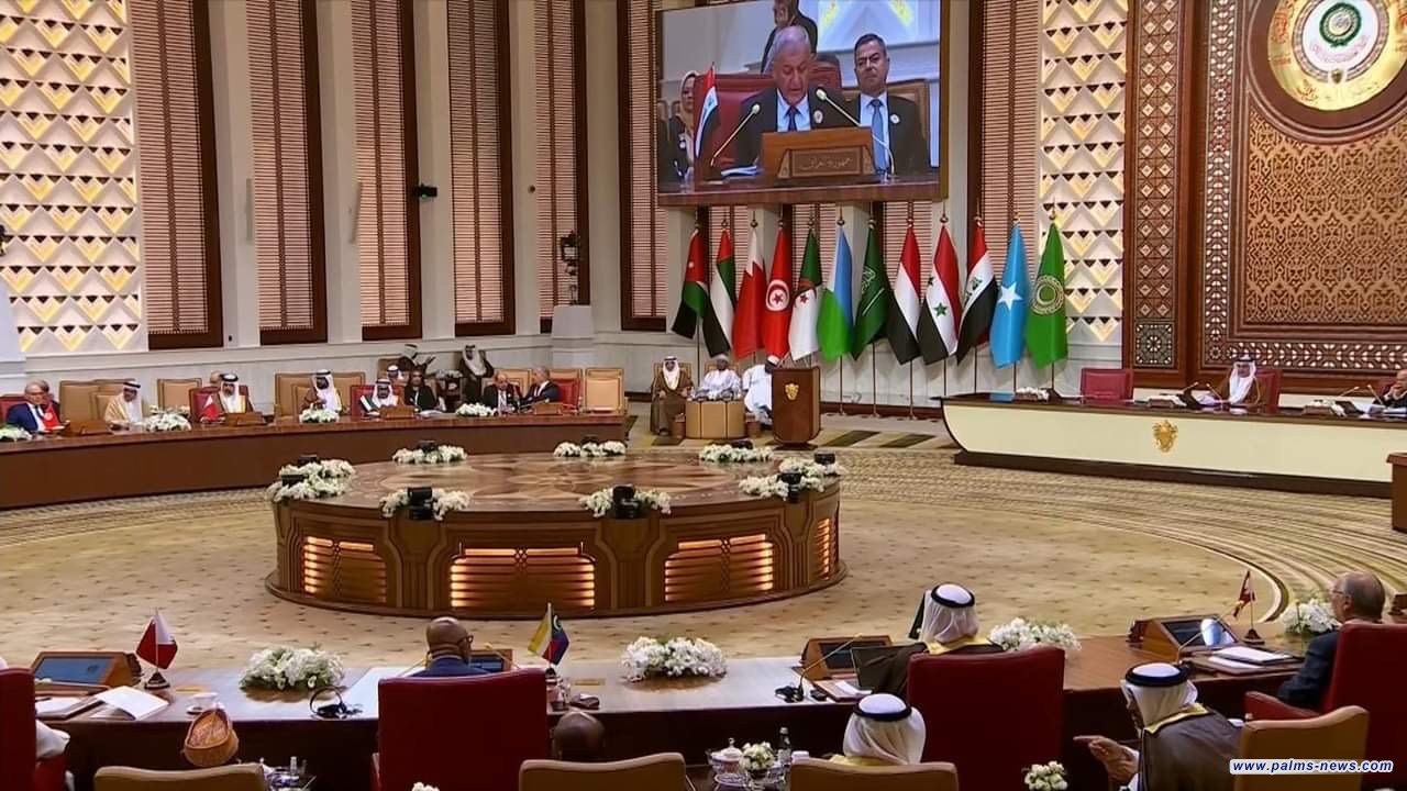 أكد الرئيس العراقي عبد اللطيف جمال رشيد، خلال كلمته التي ألقاها اليوم الخميس السادس عشر من مايو، على هامش انعقاد مؤتمر القمة العربية ال(33) في البحرين، أن هذه القمة تأتي بالتزامن مع استمرار تداعيات العدوان الذي يشنه الكيان الصهيوني على الشعب الفلسطيني في قطاع غزة، في انتهاك سافر لأحكام القانون الدولي والإنساني ودمار استباح دماء الأبرياء، سيما الأطفال والنساء والشيوخ، وأدى إلى استشهاد وإصابة وتشريد أكثر من مئة ألف فلسطيني وبشكل ممنهج ووحشي وبما يُعد ابادةً جماعيةً بكل المقاييس.