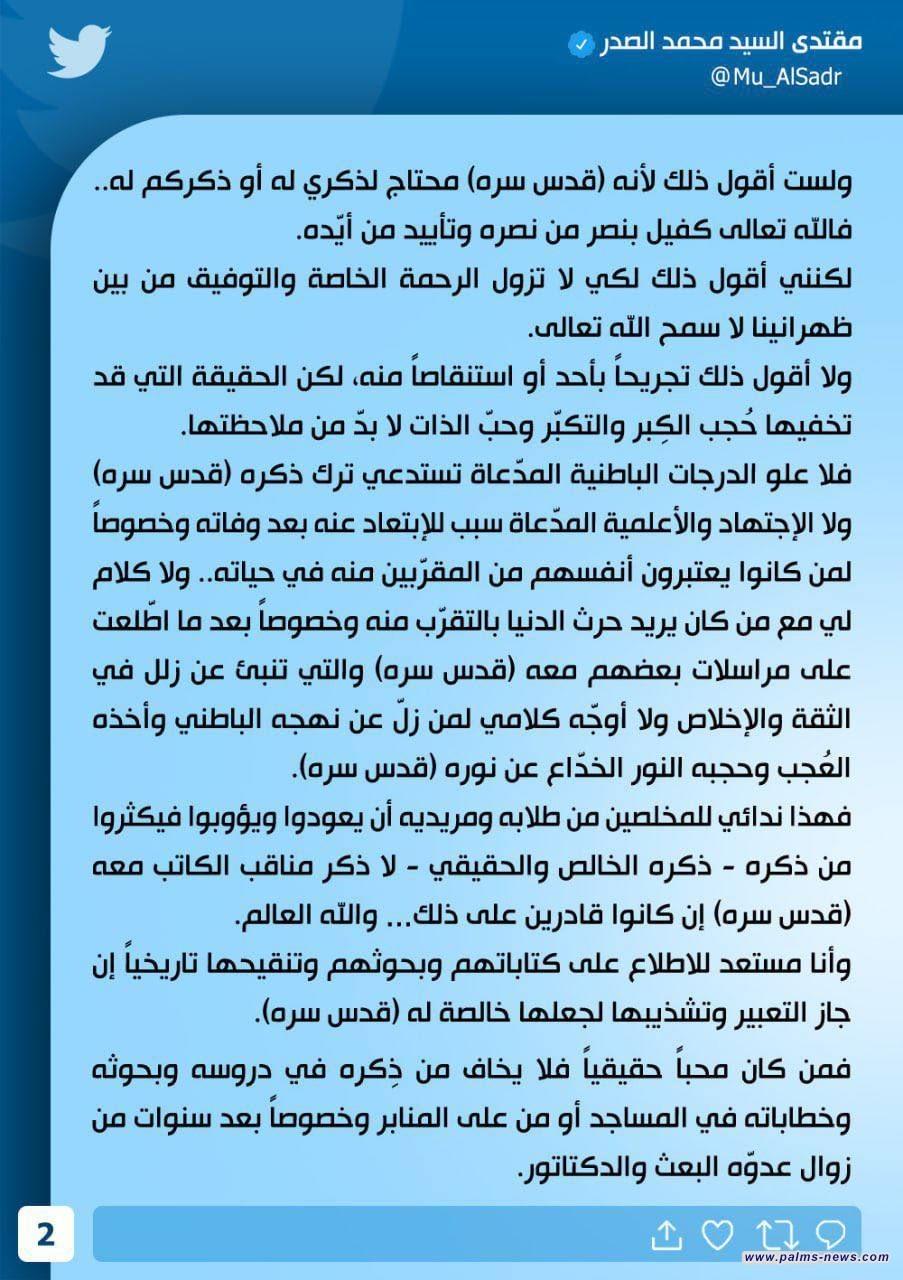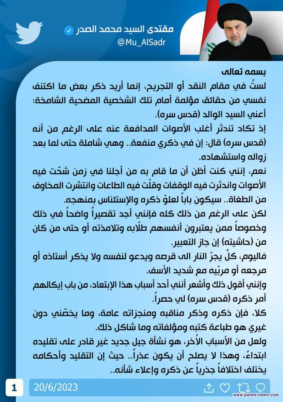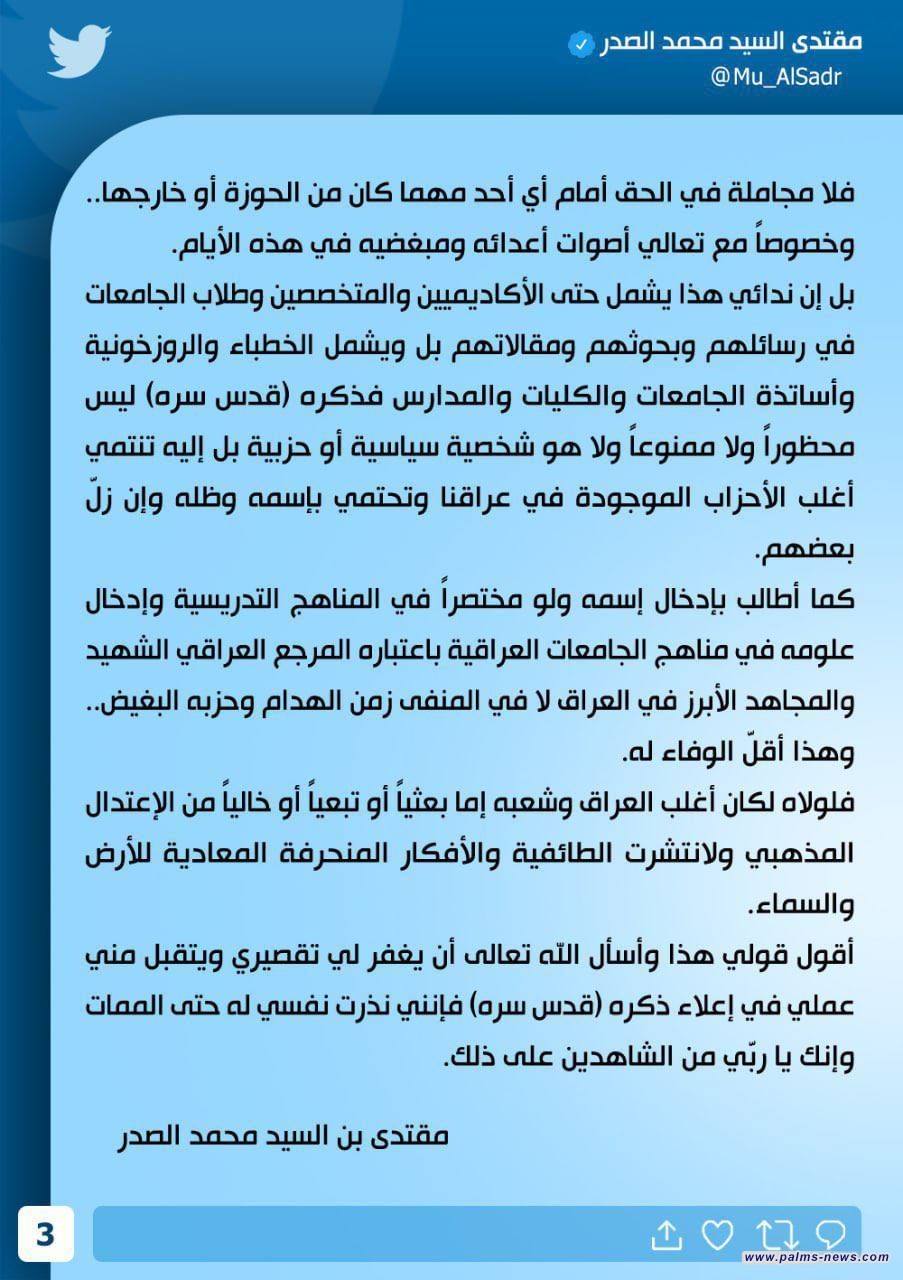 زعيم التيار الصدري مقتدى الصدر يطالب بادخال اسم والده في المناهج التدريسية وادخال علومه في مناهج الجامعات العراقية