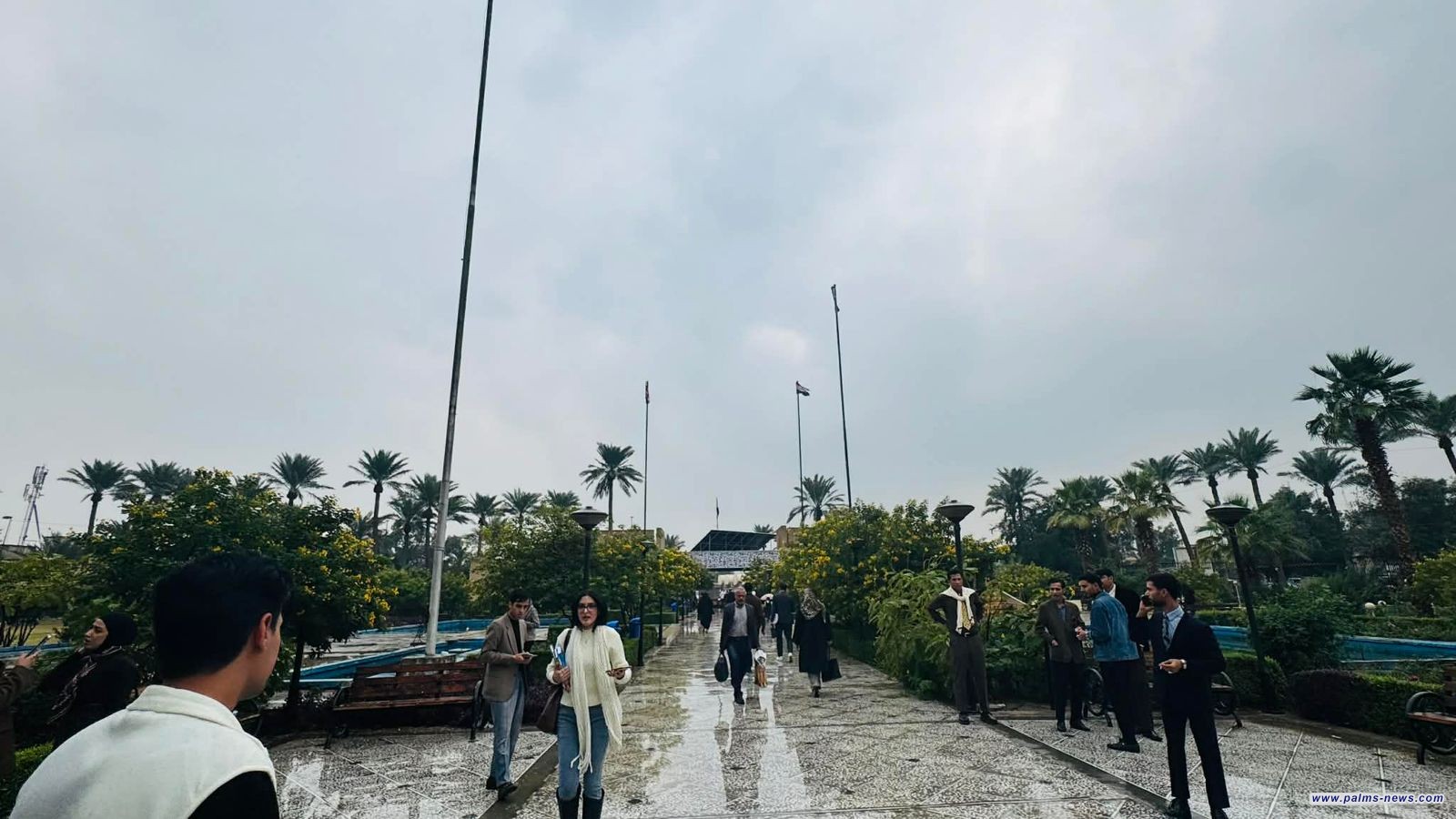 عدسة نخيل عراقي توثق موجة الأمطار داخل أروقة الجامعة المستنصرية ببغداد.