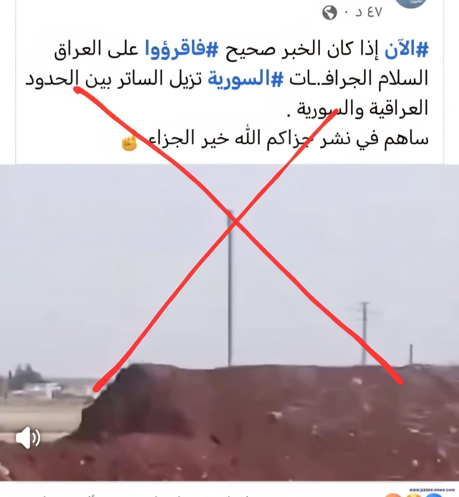 أوضحت قيادة قوات الحدود أن المقطع المشار إليه يعود لإزالة ساتر ترابي داخل الأراضي السورية، وتحديدًا في محافظة حلب، ولا يمت بصلة إلى الحدود العراقية – السورية.