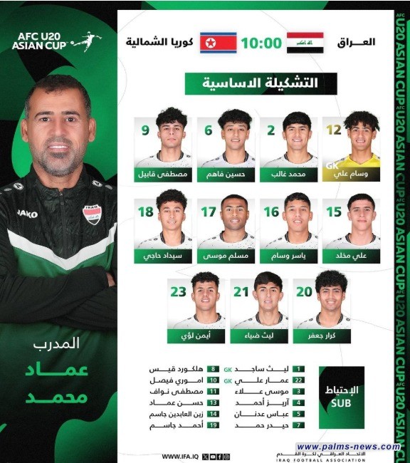 مدرب منتخب الشباب يعلن التشكيلة النهائية لمواجهة كوريا الشمالية