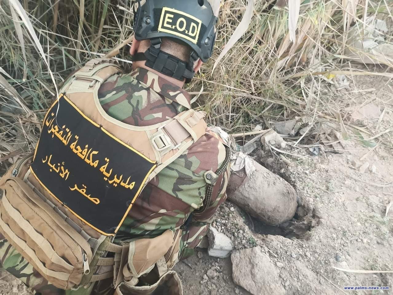 وفي محافظة ديالى قضاء بعقوبة منطقة ام العظام تمت معالجة قذيفتين، وفي محافظة الانبار قضاء هيت ناحية البغدادي تمكنت من معالجة (١٠١) عبوة ناسفة محلية الصنع، ومعالجة (٥٢) مخلفا حربيا متنوعا، وفق الإجراءات القياسية.