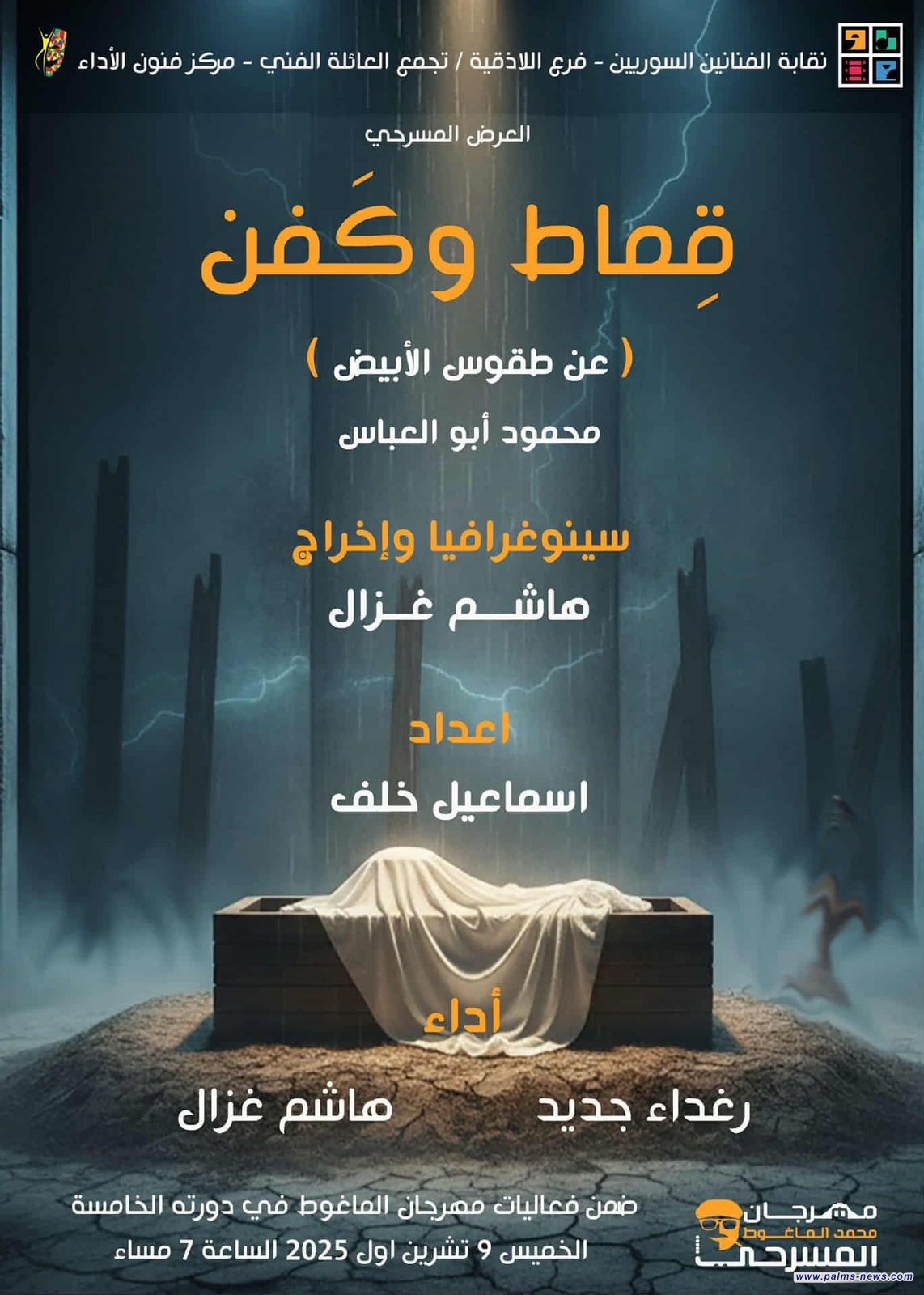 حصدت مسرحية "كفن وقماط" المأخوذة عن نص "طقوس الأبيض" للفنان العراقي القدير محمود أبو العباس، جائزة أفضل عمل متكامل في مهرجان محمد الماغوط المسرحي الذي أُقيم في سوريا، لتؤكد مجدداً حضور وتألق المسرح العراقي على الساحة العربية الفنية.