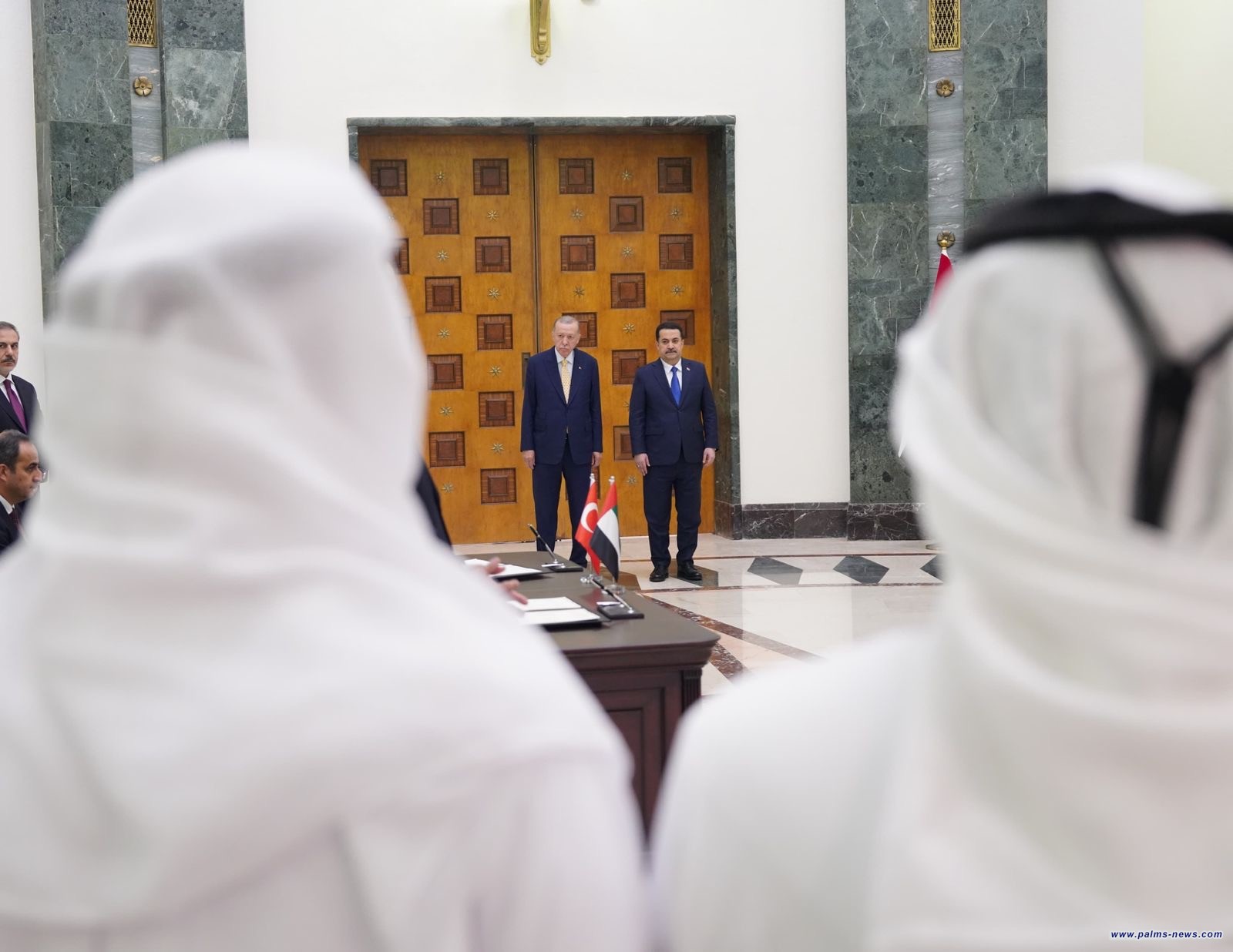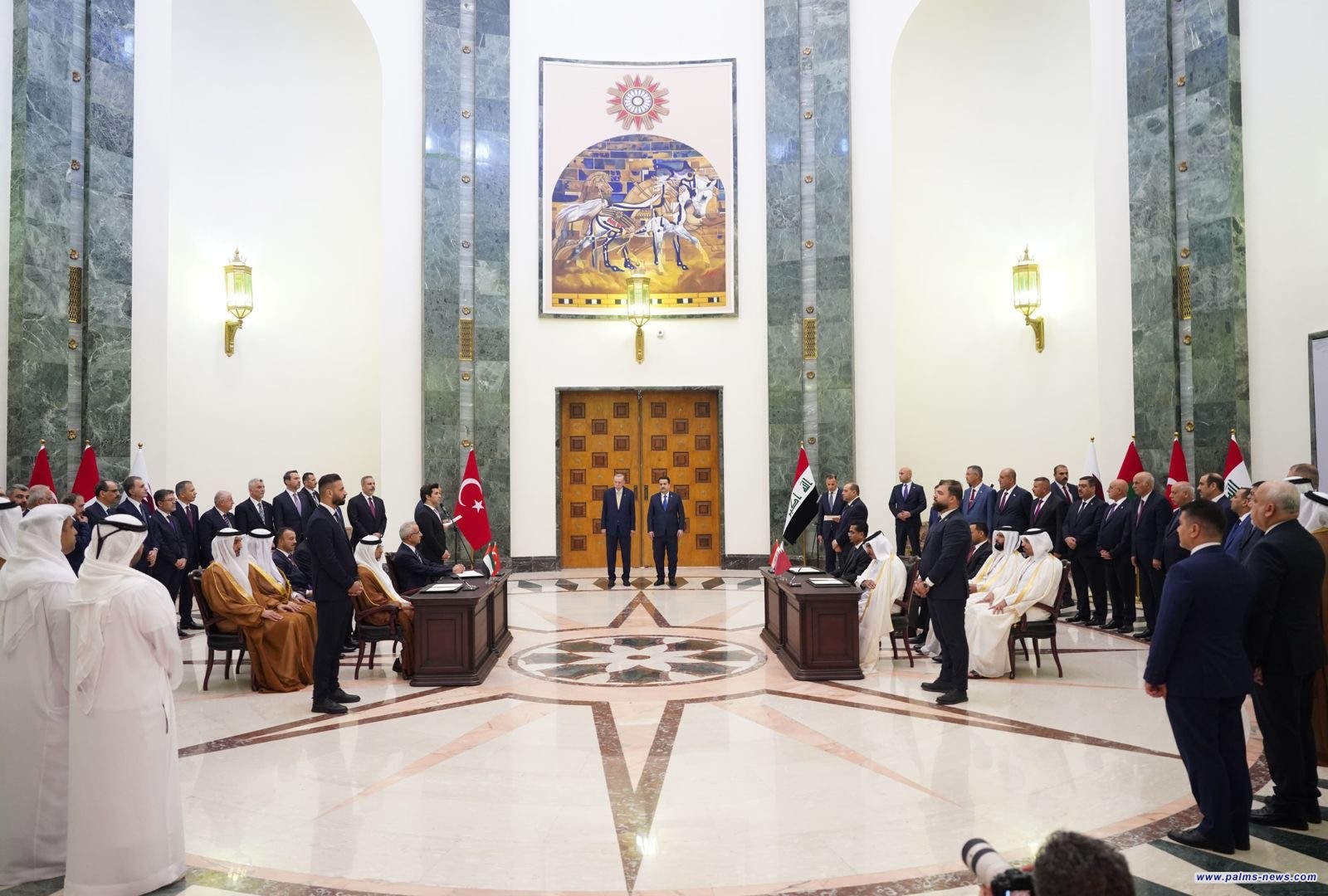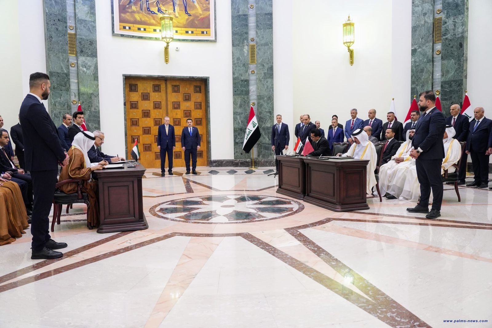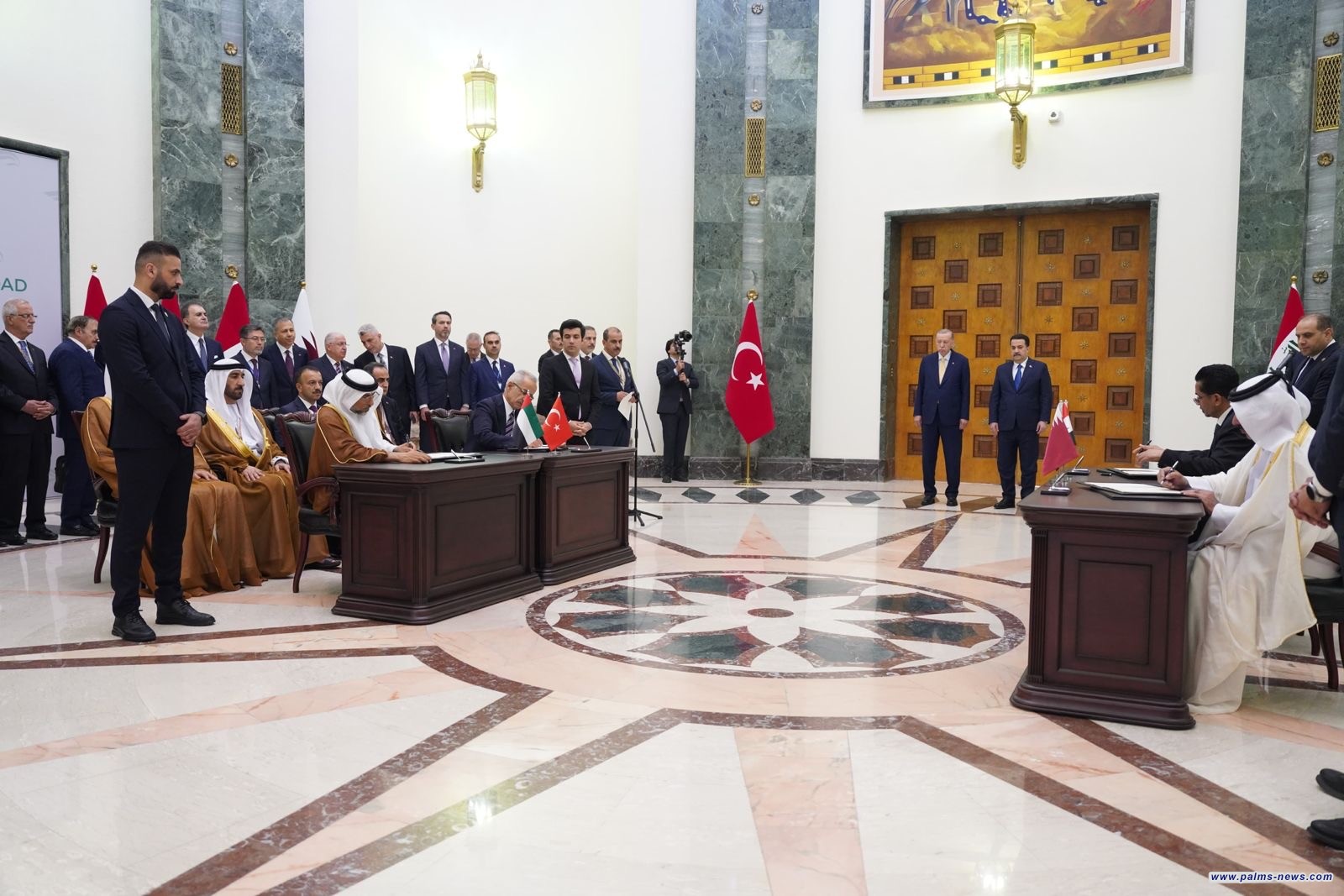 السوداني والرئيس التركي يرعيان توقيع مذكرة تفاهم رباعية بين العراق وتركيا وقطر والامارات للتعاون في مشروع طريق التنمية