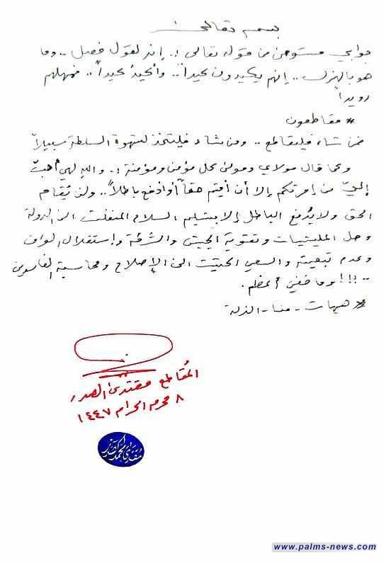 السيد مقتدى الصدر يجدد مقاطعة العملية الانتخابية: من شاء فليقاطع، ومن شاء فليتخذ شهوة السلطة سبيلاً.