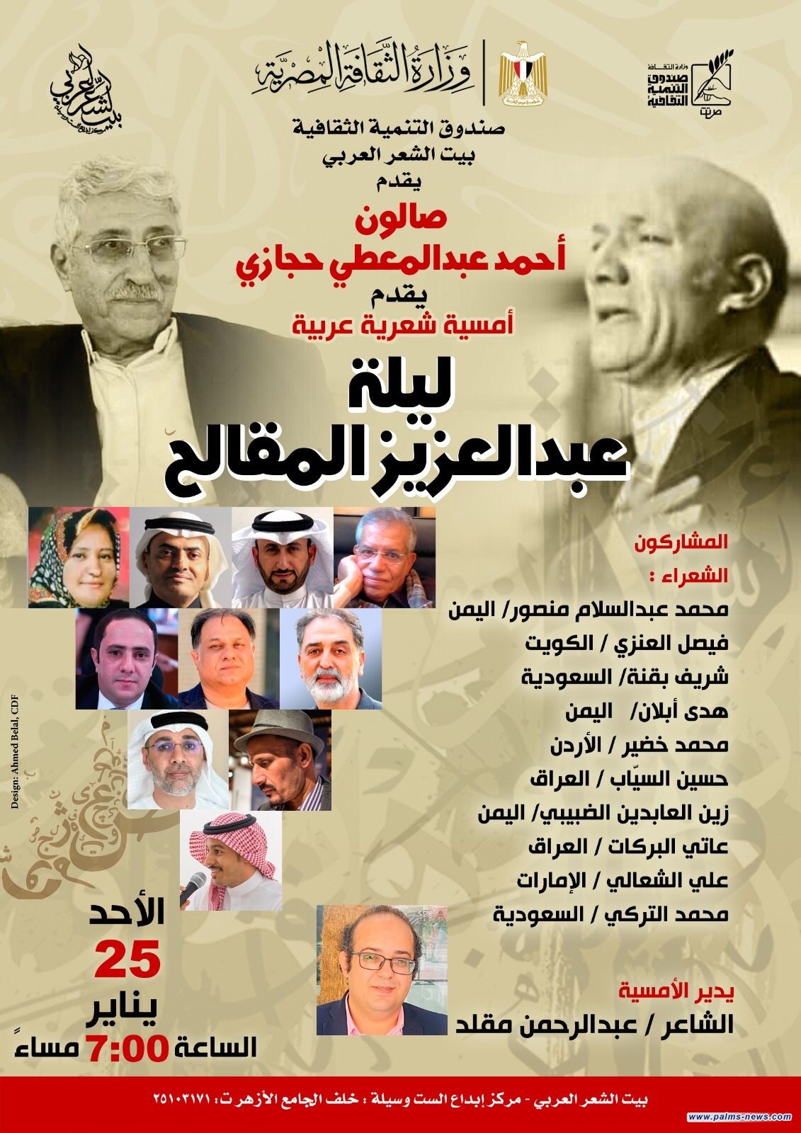 أقيمت مساء الأحد 25 يناير 2026، أمسية شعرية عربية متميّزة بعنوان (ليلة عبدالعزيز المقالح) في صالون أحمد عبدالمعطي حجازي ببيت الشعر العربي، وسط حضور ثقافي لافت وجمهور غفير من محبّي الشعر والأدب.