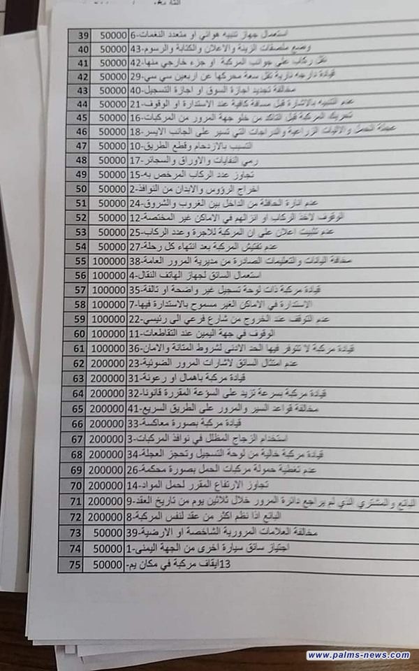 أدناه قائمة بالمخالفات والغرامات: