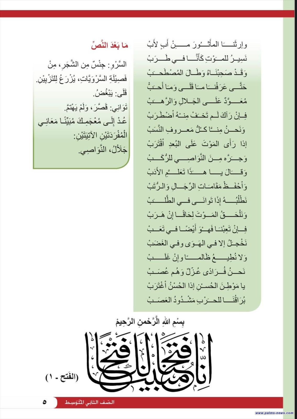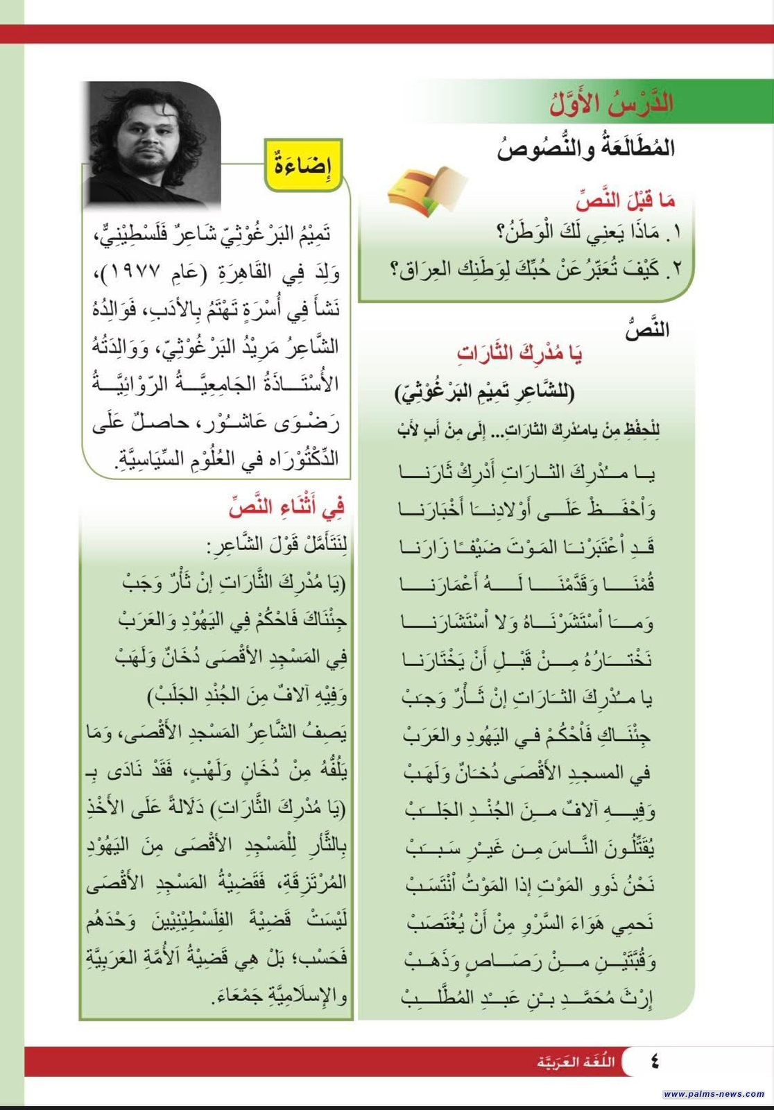وزارة التربية العراقية تضمن شعر الشاعر الفلسطيني تميم البرغوثي بمادة اللغة العربية للصف الثاني المتوسط.