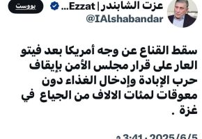 عزت الشابندر: سقط القناع عن وجه أمريكا بعد فيتو العار على قرار مجلس الأمن بإيقاف حرب الإبادة وإدخال الغذاء دون معوقات لمئات الالاف من الجياع في غزة