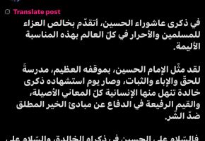السوداني : لقد مثّلَ الإمام الحسین، بموقفه العظیم، مدرسة للحق والإباء والثبات.
