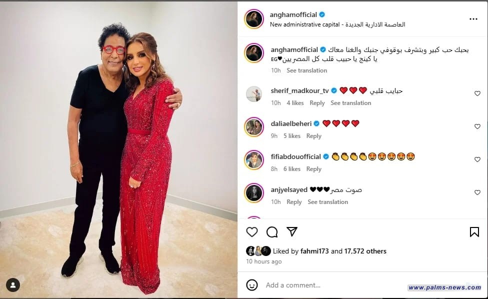 وكتبت أنغام على الصورة قائلةً: "بحبك حب كبير وبتشرّف بوجودي جنبك والغناء معاك يا كينغ يا حبيب قلب كل المصريين".