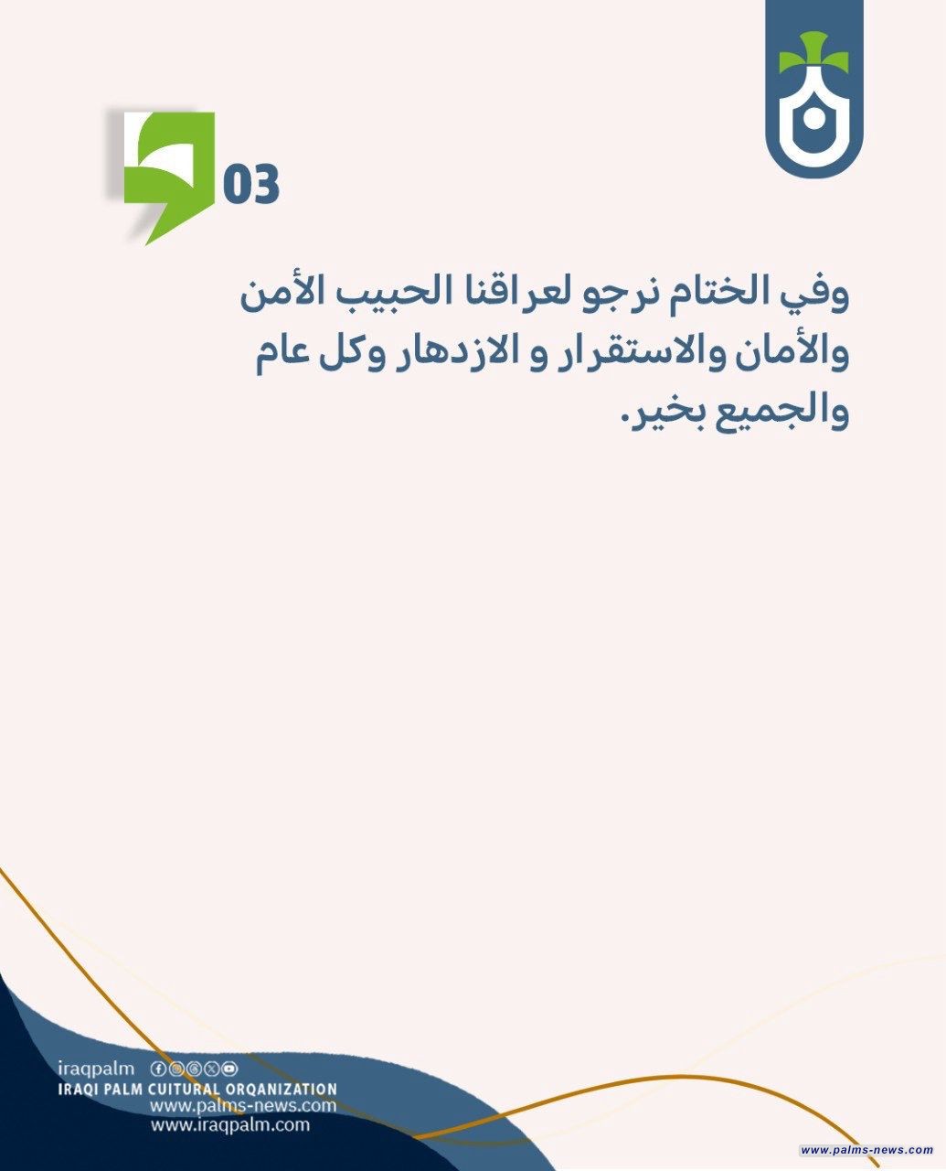 وفي الختام نرجو لعراقنا الحبيب الأمن والأمان والاستقرار و الازدهار وكل عام والجميع بخير.