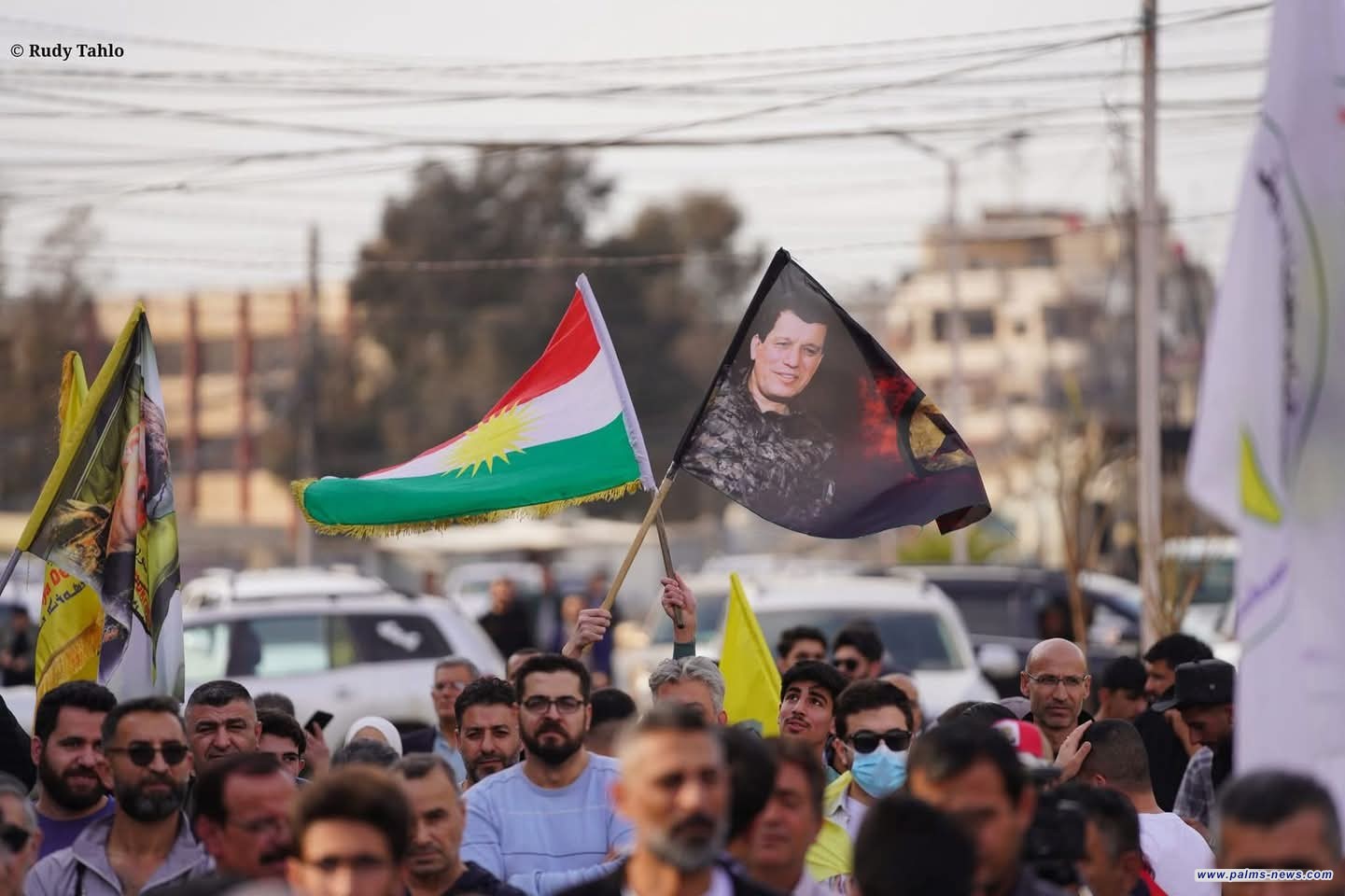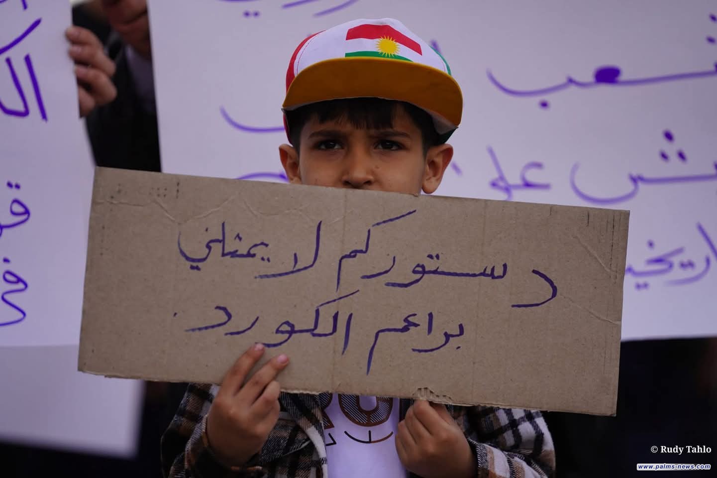 أهالي مدينة القامشلي السورية يحتجون على بنود الدستور السوري المؤقت.