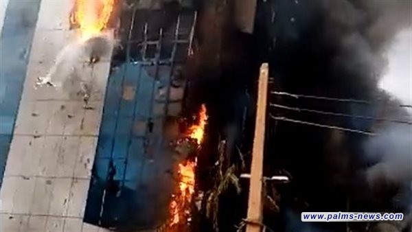 ويُظهر مقطع فيديو تم تداوله على وسائل التواصل الاجتماعي مبنى مرتفعًا به معظم واجهته الأمامية متضررة ومشتعلة مما أدى إلى تصاعد الدخان الأسود في الهواء.