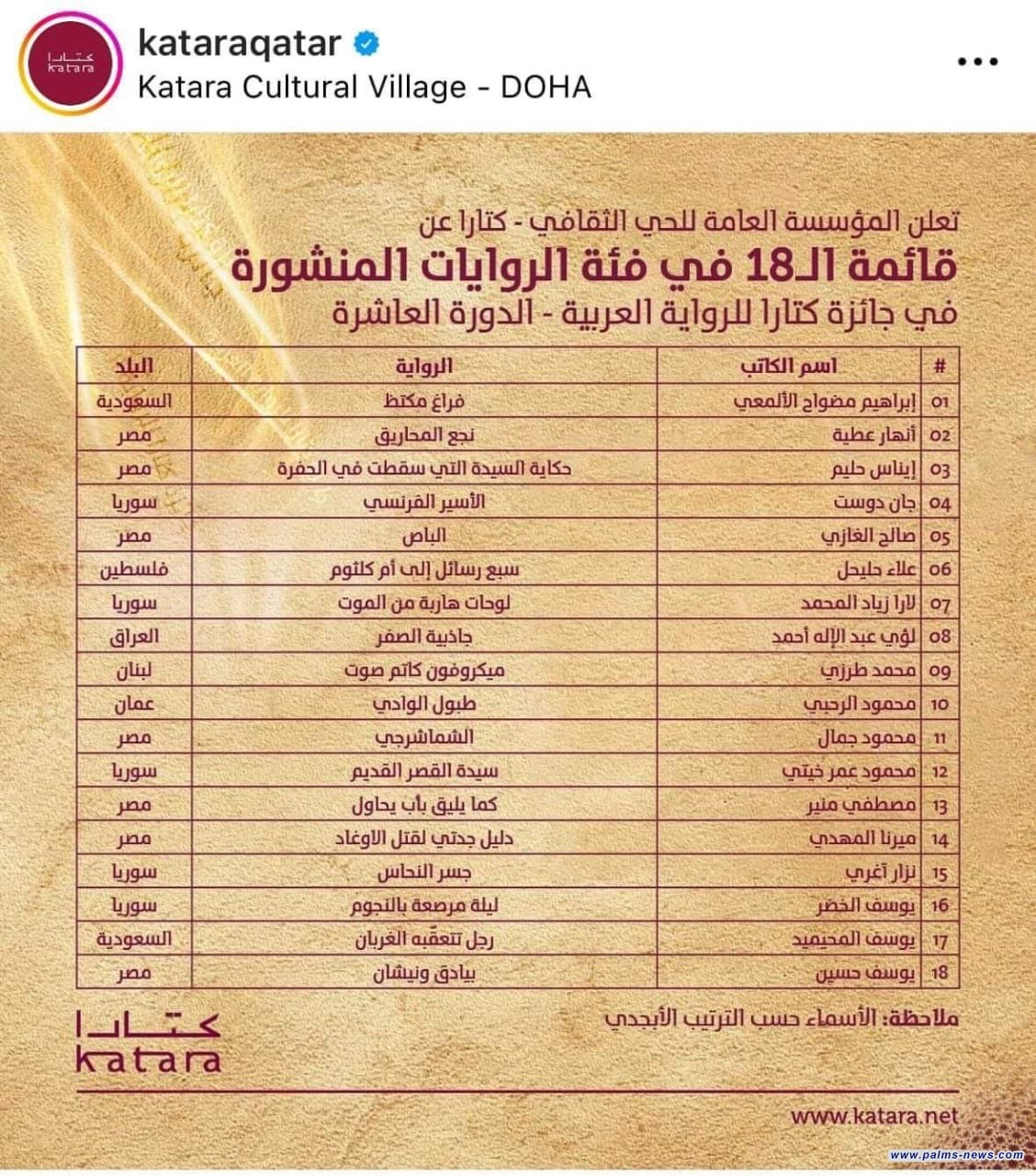 الإعلان عن القائمة الطويلة لجائزة كتارا