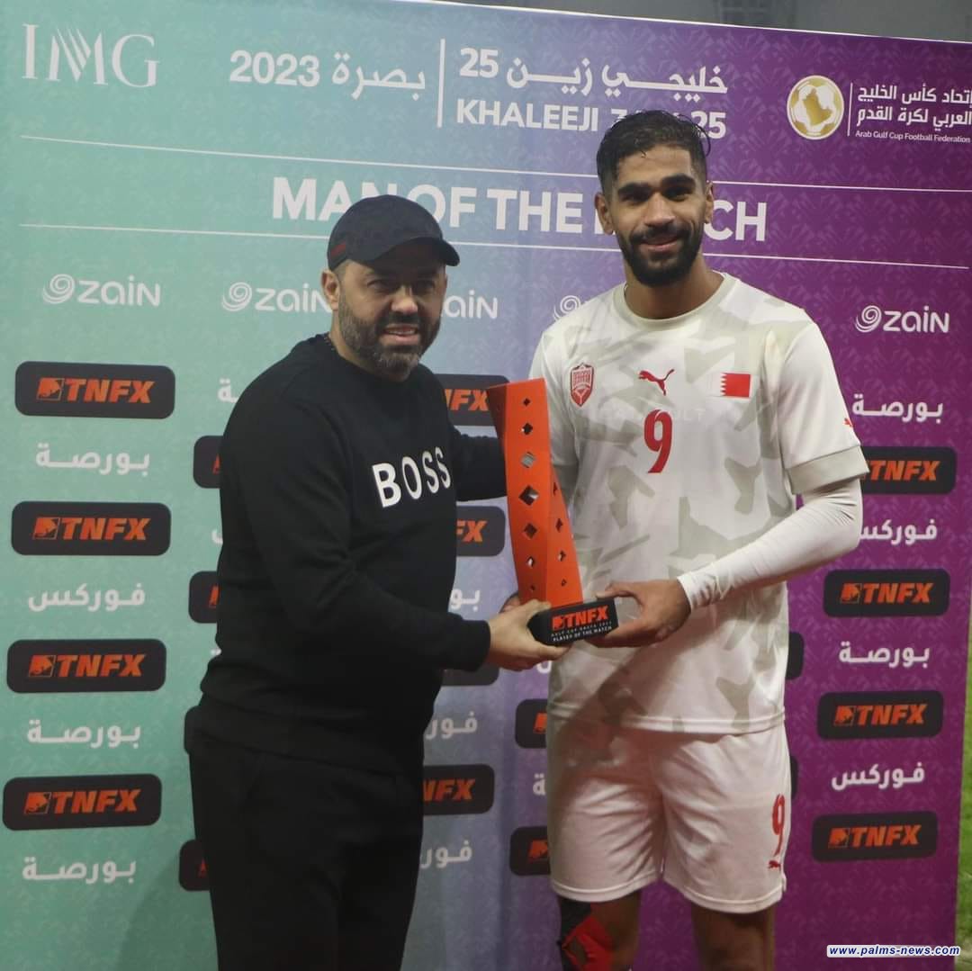 حصل لاعب المنتخب البحريني عبد الله يوسف، على جائزة أفضل لاعب في المباراة، بعد أن قدم اداءً كبيراً ساعد منتخبه على تصدر المجموعة الثانية.