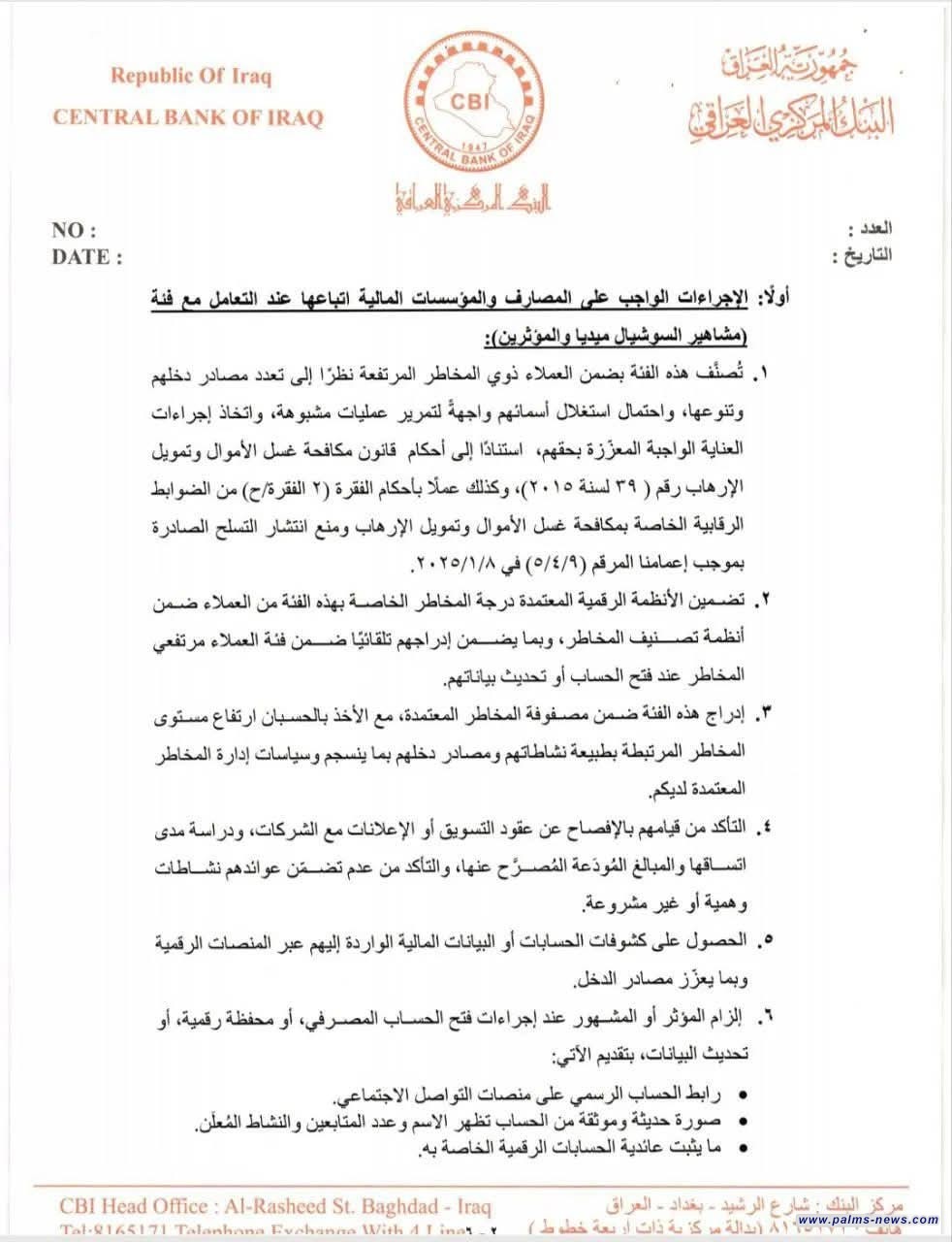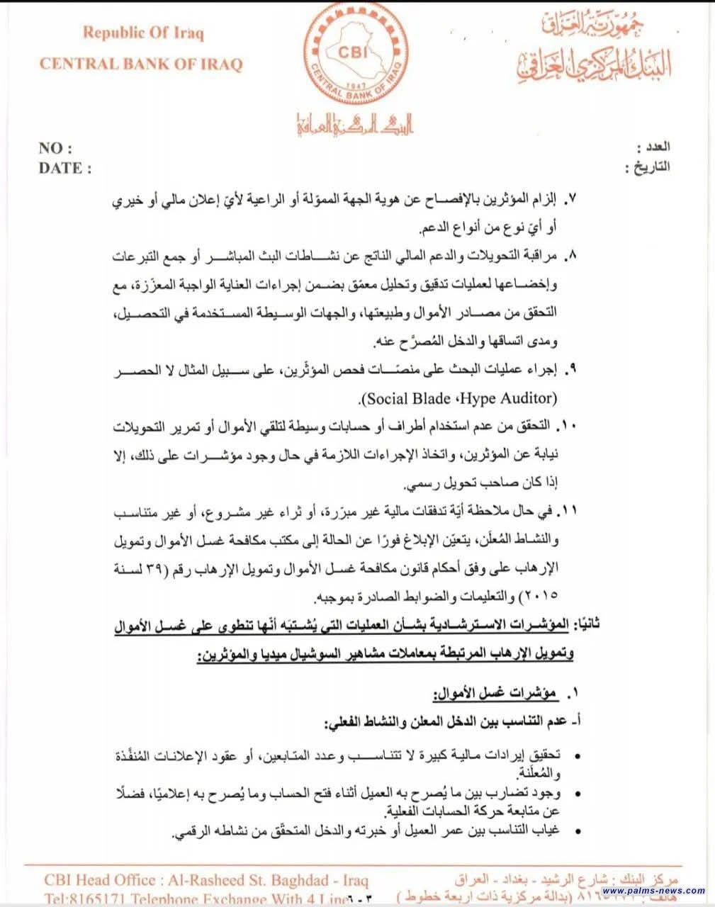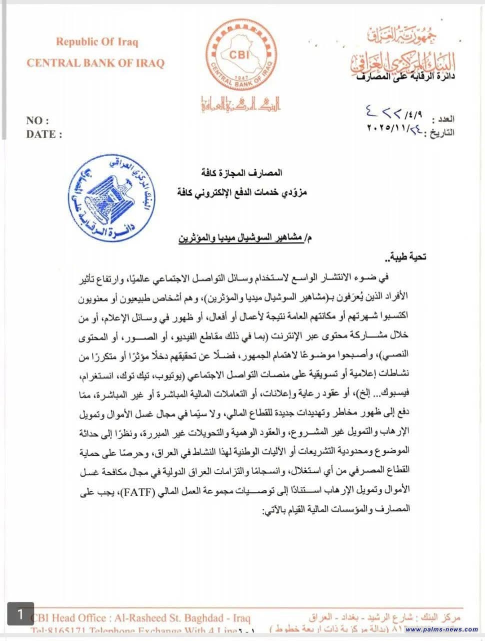 البنك المركزي يوجه المصارف وخدمات الدفع الالكتروني بشان مشاهير السوشل ميديا