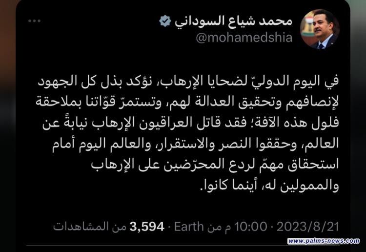 السوداني : قاتل العراقيون الإرهاب نيابةً عن العالم وحققوا النصر والاستقرار
