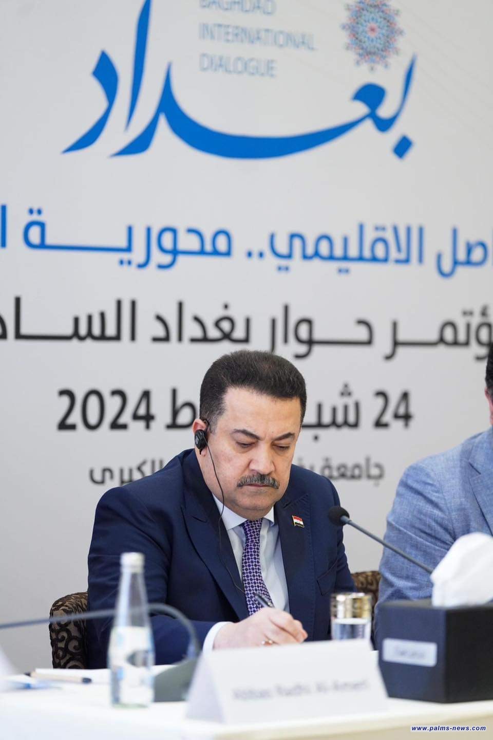 أكد رئيس مجلس الوزراء العراقي محمد شياع السوداني، اليوم الأحد الخامس والعشرين من شباط، خلال مشاركته في ندوة حوارية أقامها معهد بغداد للحوار، بعنوان "التواصل الإقليمي.. محورية العراق" على المواضيع الراهنة ومسار العلاقات العراقية مع دول الجوار والعالم، وأبرز المواقف بهذا الشأن.