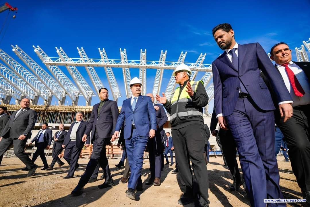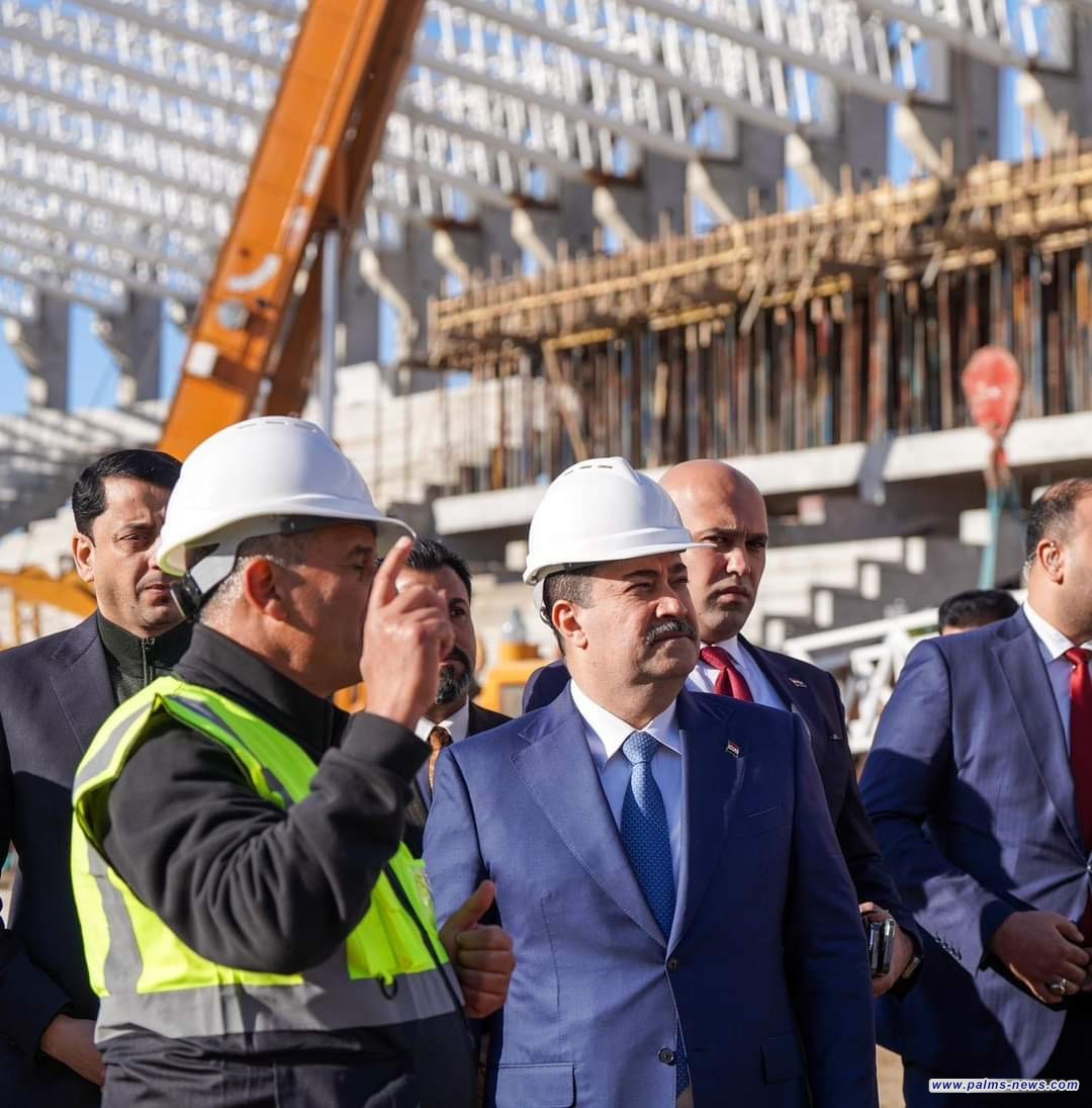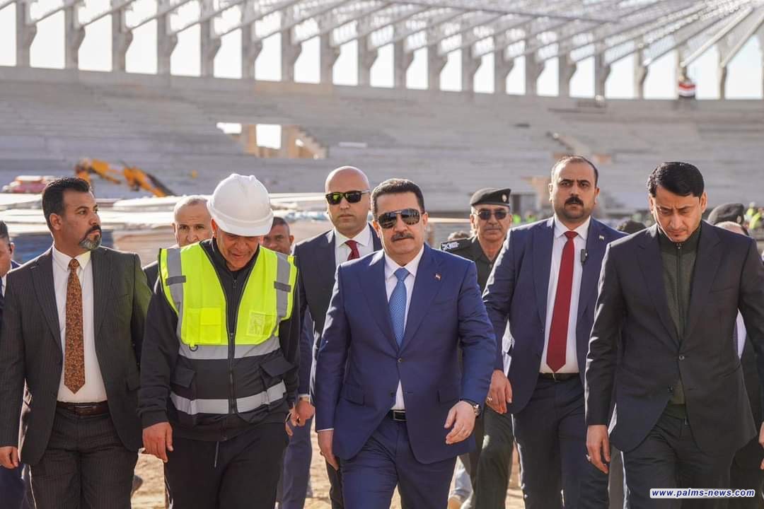 السوداني يطلع ميدانياً على مشروع ملعب الإدارة المحلية في الناصرية، والذي تجاوزت نسبة الإنجاز فيه (72٪)