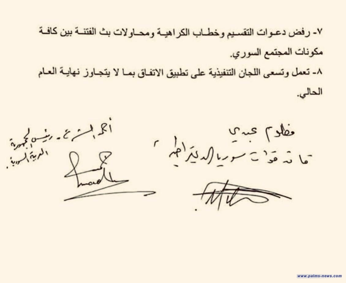 كما ينص على وقف إطلاق النار في كافة الأراضي السورية، وأن المجتمع الكردي أصيل في الدولة وحقه مضمون في المواطنة والدستور.