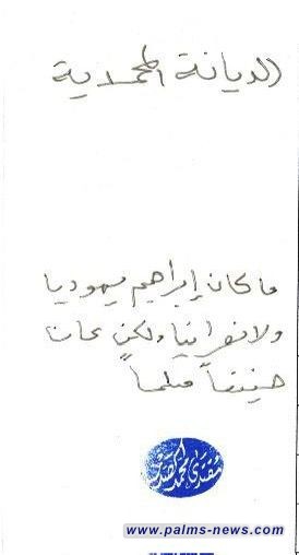 الصدر في تدوينة جديدة "الديانة المحمدية” والآية الكريمة “مَا كَانَ إِبْرَاهِيمُ يَهُودِيًّا وَلَا نَصْرَانِيًّا وَلَٰكِن كَانَ حَنِيفًا مُّسْلِمًا"