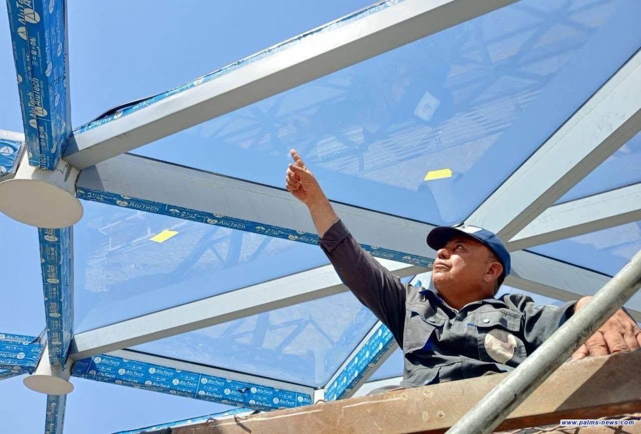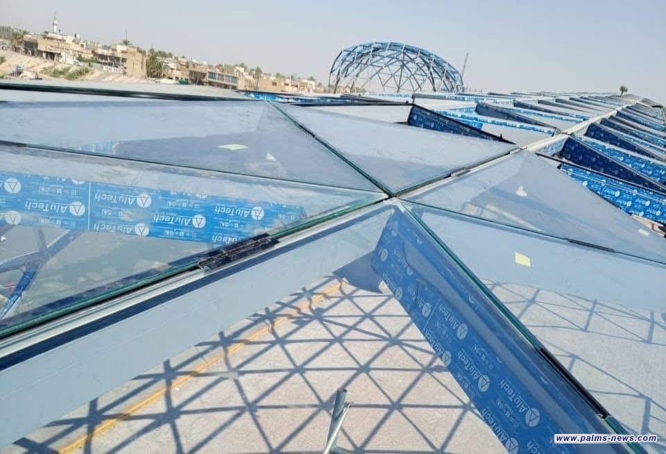 المباشرة بتركيب الزجاج الخارجي لجسر الكريعات للمشاة فوق نهر دجلة ببغداد.