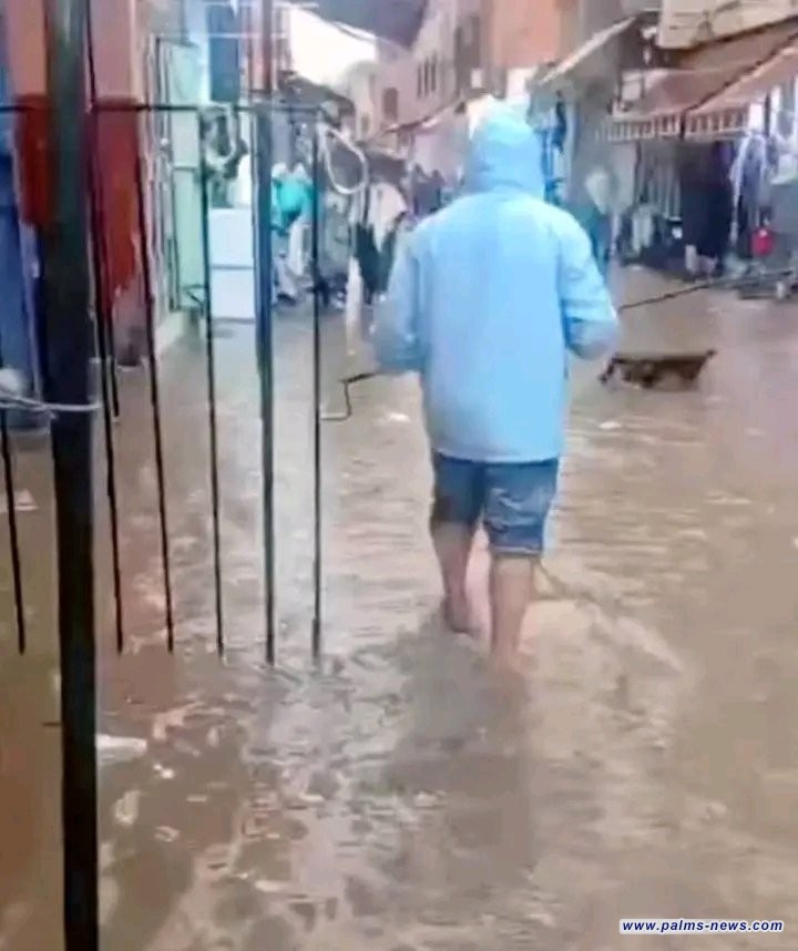 شهدت مدينة مراكش المغربية هطولا غزيرا للأمطار حيث تحولت شوارع المدينة إلى أنهار وغمرت المياه مواقف السيارات تحت الأرض، وبدأت "الشلالات" تتدفق في مراكز التسوق.