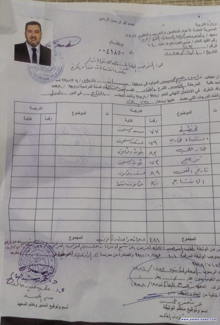 وأضاف الحسيني، أنه يطالب باتخاذ الإجراءات القانونية بحق مدير المعهد عمر رشيد صالح، لتنظيم ملف كامل يغطّي على عملية التزوير، مؤكدًا ضرورة مساءلة جميع الأطراف المتورطة في القضية.