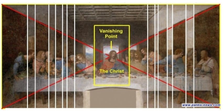 وبين الكيفية التي تمكن من خلالها دافنشي السيطرة على أكثر من 40م٢ (مساحة اللوحة) بأسلوب هندسي رائع ومتكامل وبنسب فائقة الدقة، حيث بنى المؤلف فرضياته على علوم الهندسة والرياضيات الذي تمتع بها العالم ليوناردو مما اخذه من اقليدس والمعماري فيتروفيوس وصديقة لوكا باتشولي، بعيدا عن كل الفرضيات التي ربطت ليوناردو بالسحر والتنجيم والمذكورة في مختلف الكتب الغربية والغربية ذات الصلة.