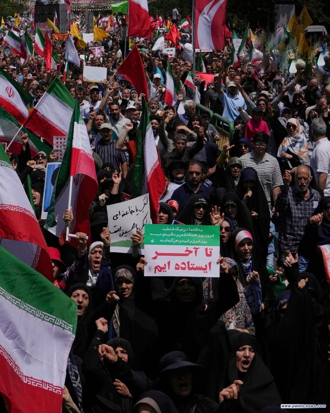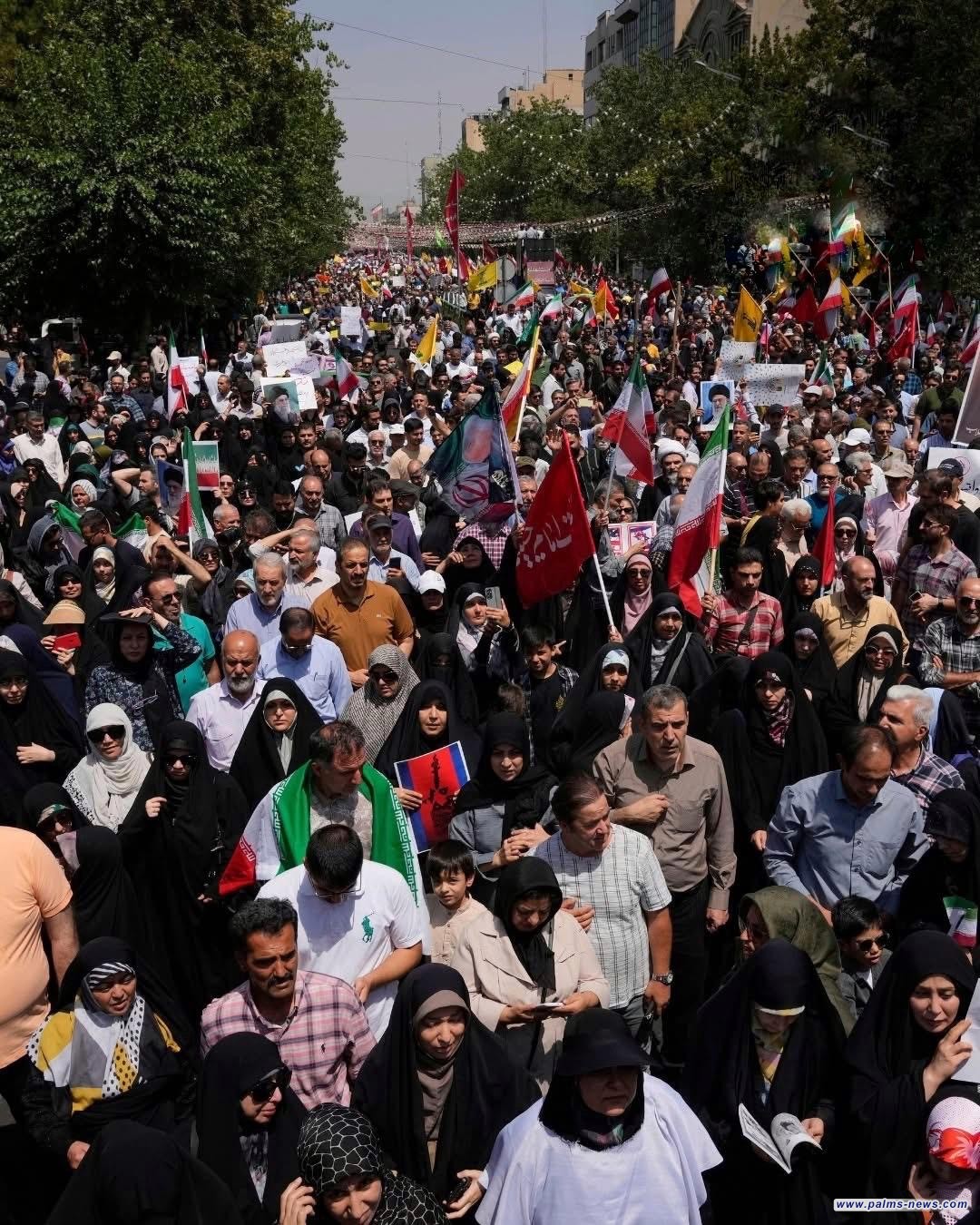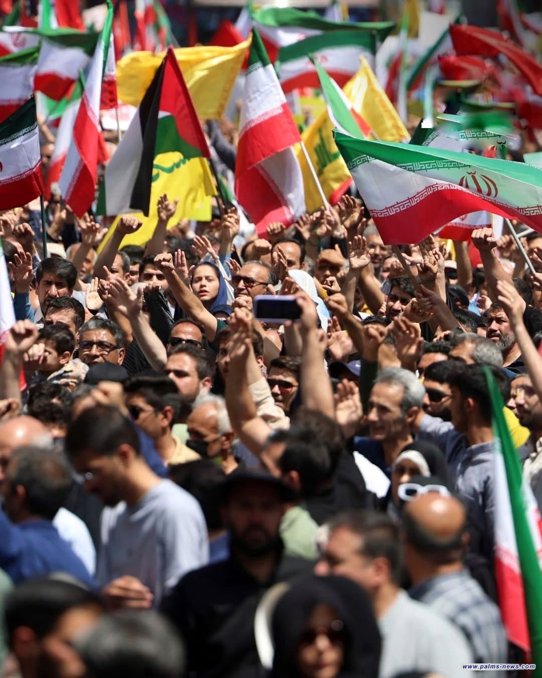 بالصور: آلاف الإيرانيين يتظاهرون تنديداً بالهجمات الإسرائيلية على بلادهم.