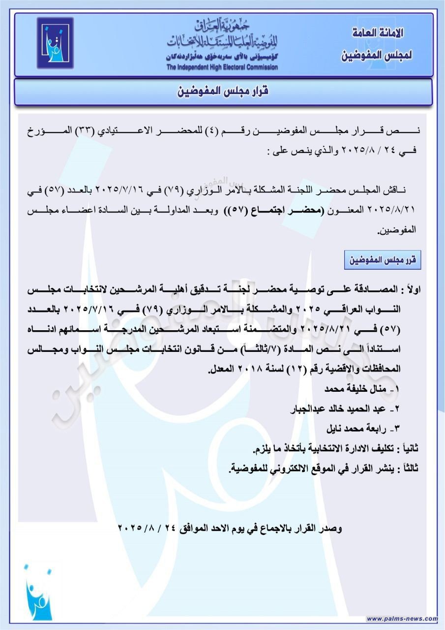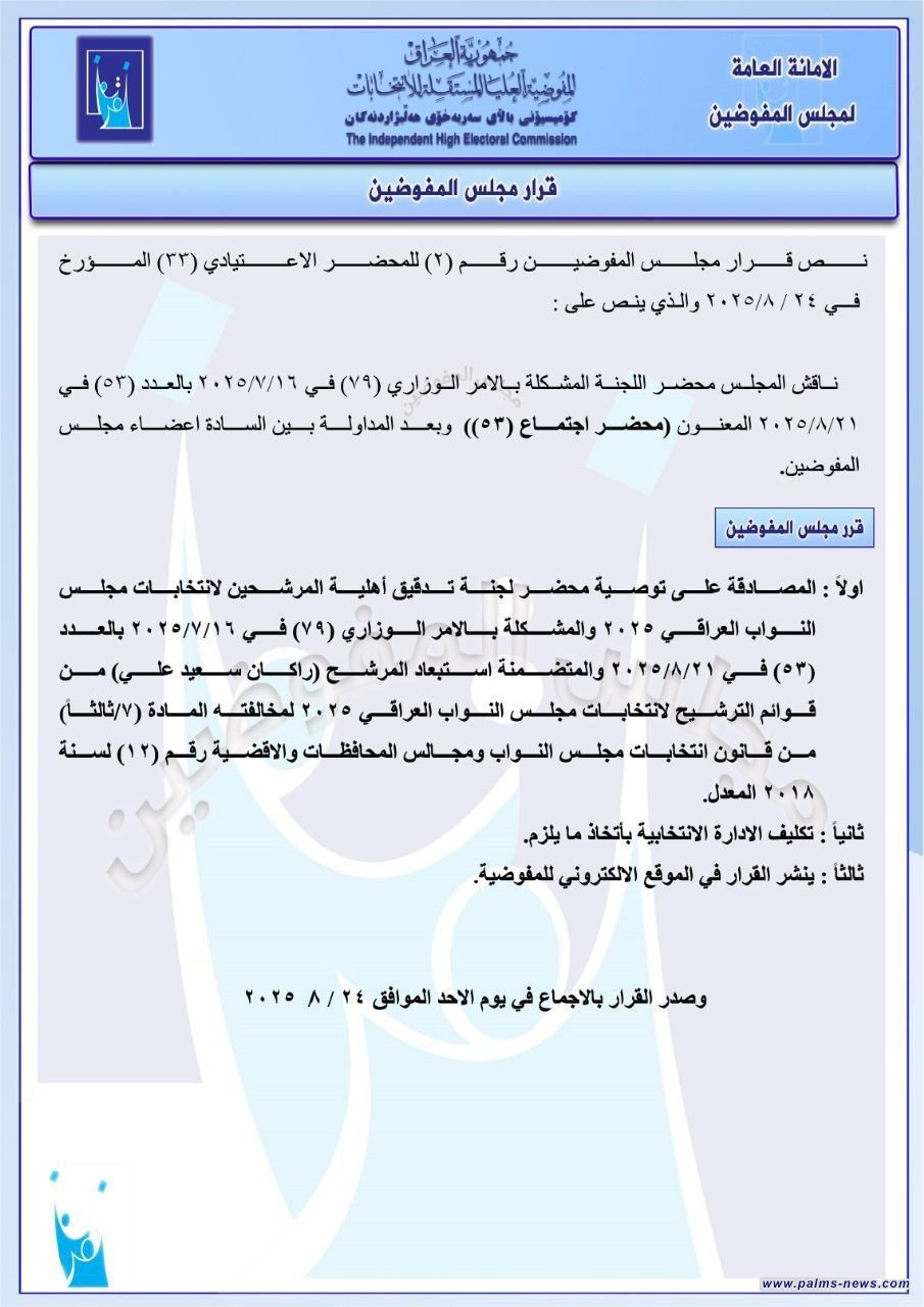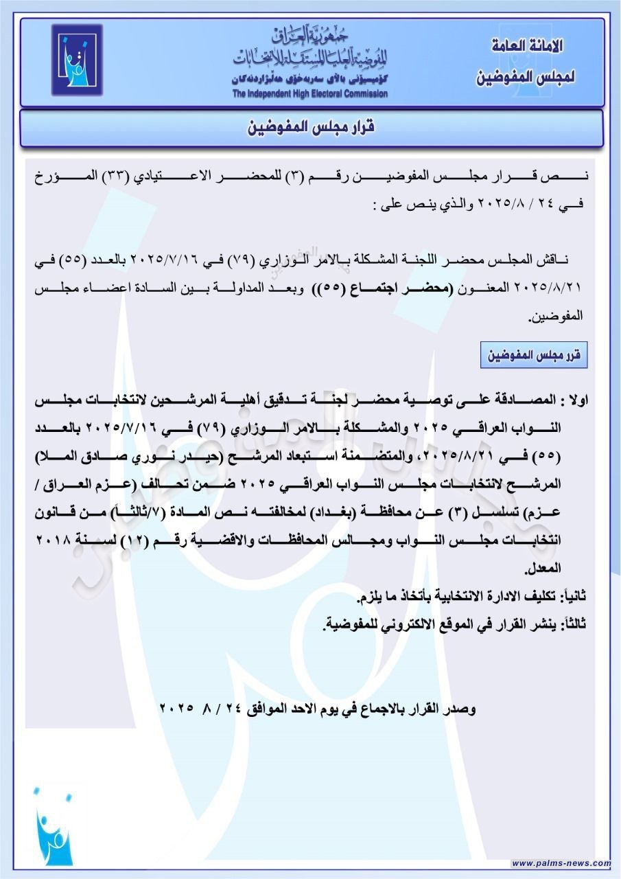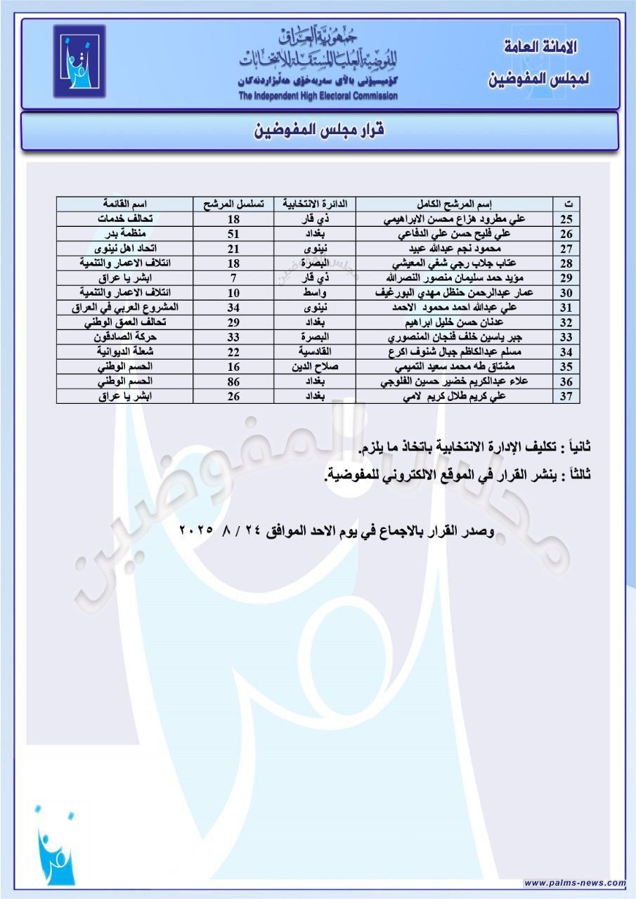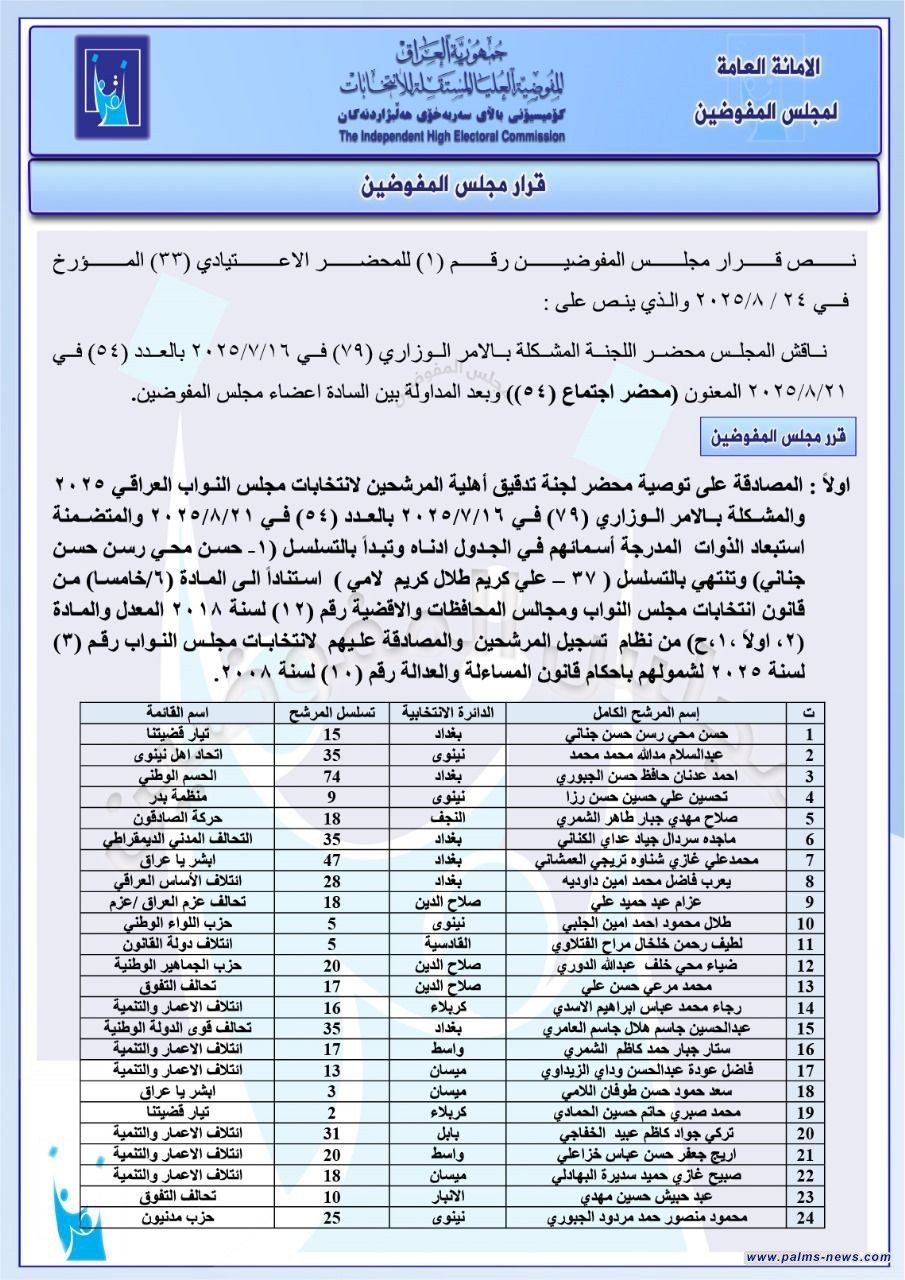 بالوثائق:مفوضية الانتخابات تصدر قوائم باستبعاد عدد من المرشحين أبرزهم حيدر الملا.