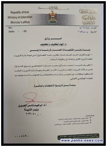 بالوثيقة .. وزير التربية ينهي تكليف مدير تربية الانبار