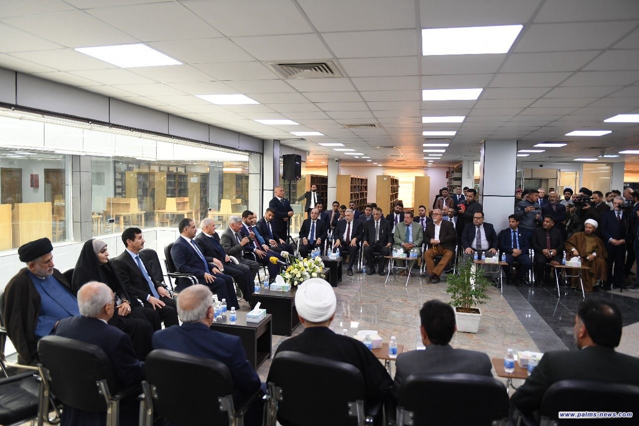 ولدى وصول فخامته إلى المؤسسة كان في استقباله المشرف العام للمؤسسة الدكتور إبراهيم بحر العلوم وشخصيات ثقافية ودينية، إضافة إلى عدد من الأساتذة في معهد العلمين للدراسات العليا.
