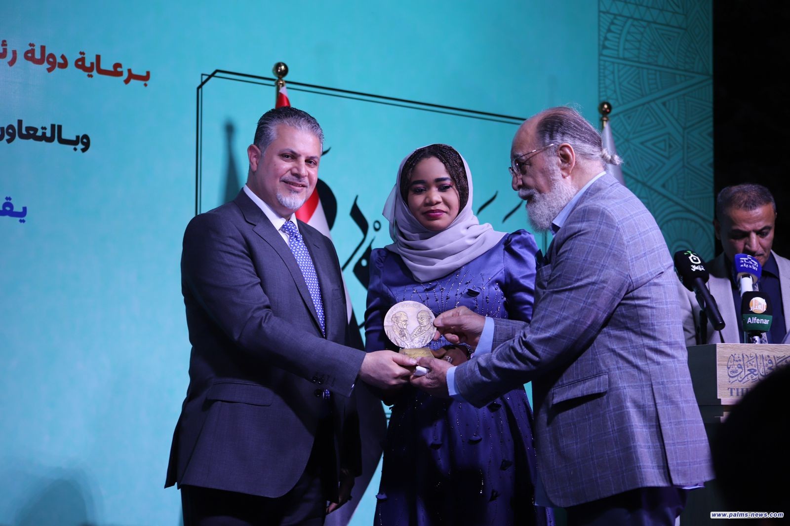 واختتمت الفعاليات بحفل بهيج أقامه اتحاد الادباء ومنظمة نخيل عراقي الثقافية، تم خلاله توزيع الجوائز الخاصة بمسابقة المهرجان بالاضافة إلى توزيع “جائزة نخيل عراقي للإبداع” – ميدالية شاعر العرب الأكبر محمد مهدي الجواهري – على العشرة الأوائل من المشاركين في المهرجان، قام بتسليمها لهم الشاعر مجاهد أبوالهيل مؤسس المنظمة يرافقه شيخ النحاتين الفنان نداء كاظم، تقديرًا لإبداعاتهم وإسهامهم في إثراء المشهد الثقافي العراقي.