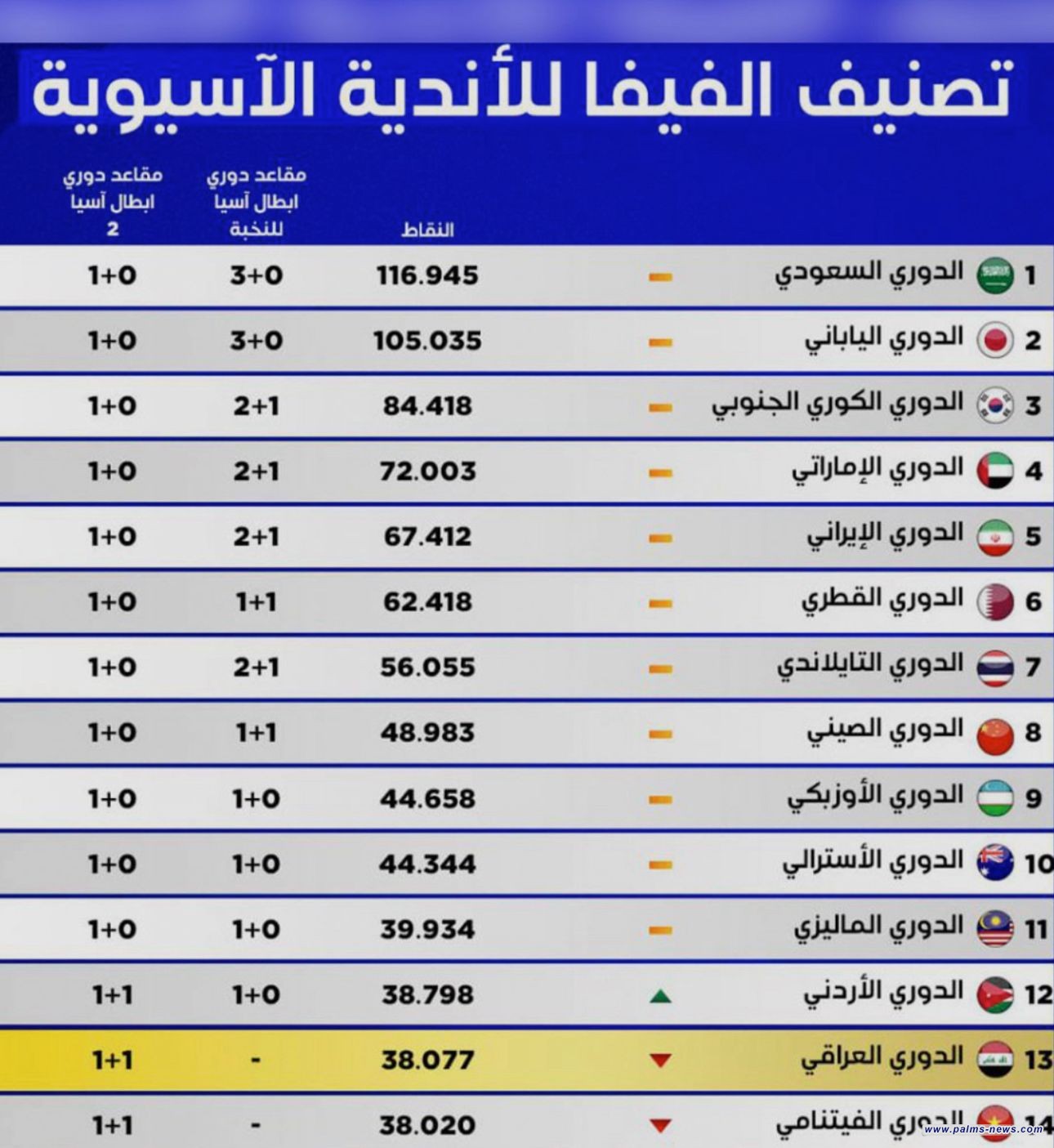 لأول مرة الدوري الأردني يتقدم على العراقي في التصنيف الجديد للفيفا.