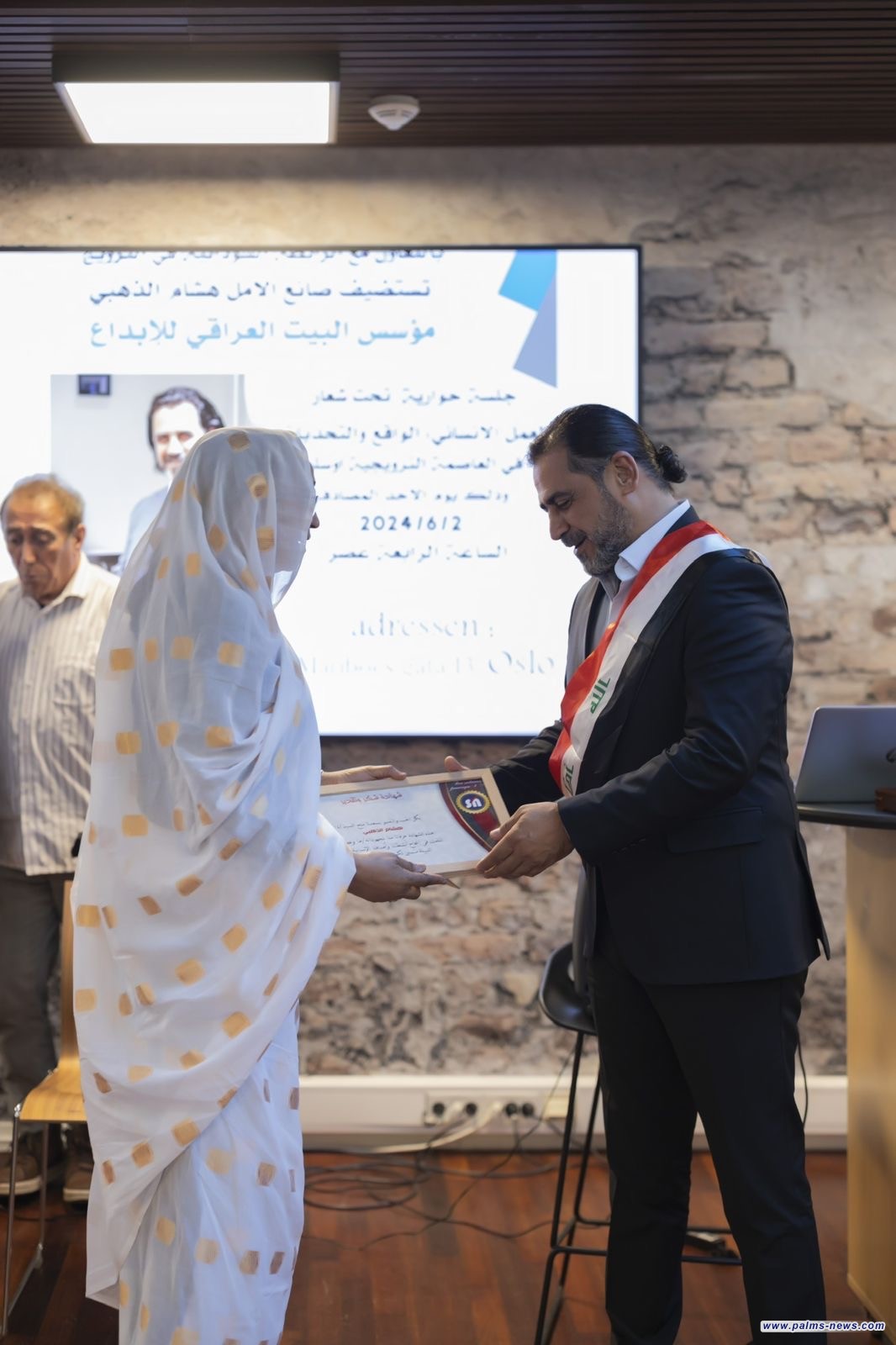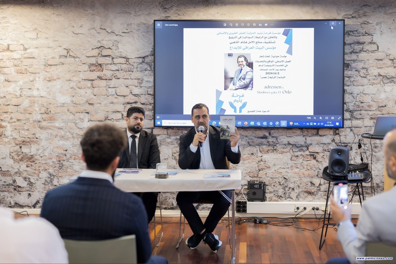 احتفت مؤسسة فرحة يتيم الدولية للعمل الخيري والإنساني وبالتعاون مع الرابطة السودانية في النرويج بصانع الأمل العراقي هشام الذهبي مؤسّس البيت العراقي للإبداع، وذلك في جلسة حوارية عن العمل الإنساني الواقع والتحديات، بحضور الجالية العراقية هناك.