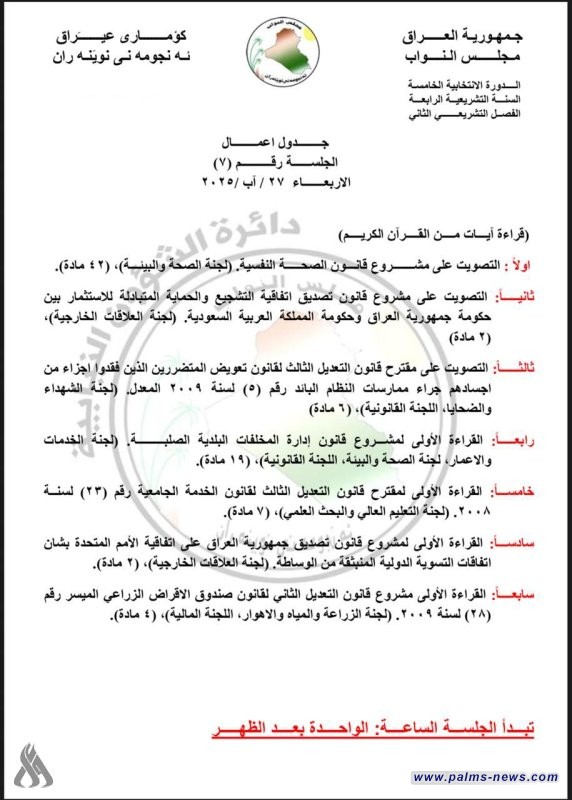 مجلس النواب ينشر جدول أعمال جلسة اليوم الأربعاء