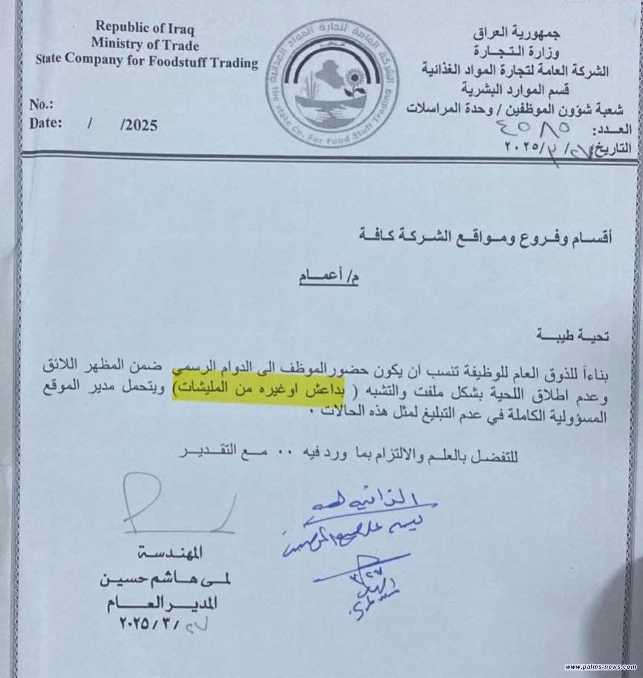 وجه النائب مصطفى سند، رسالة شديدة اللهجة للمدير العام للغذائية بوزارة التجارة لمى هاشم، قال فيها أن هاشم عُرفت بإجبارها الموظفين على كتابة كلمة "المثول أمام سيادتك" والأن تجبرهم على حلق اللحى.