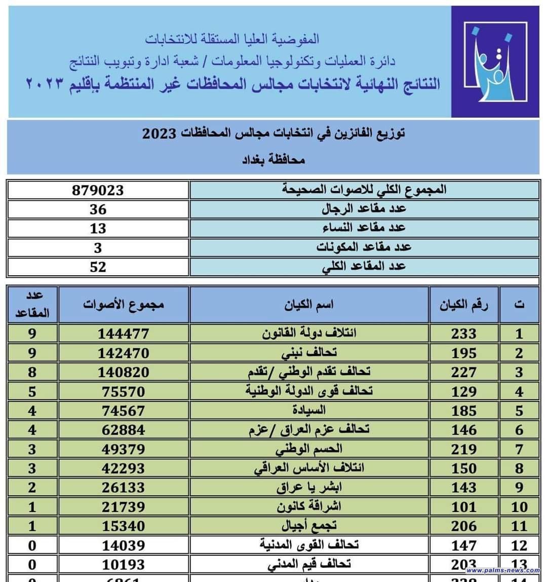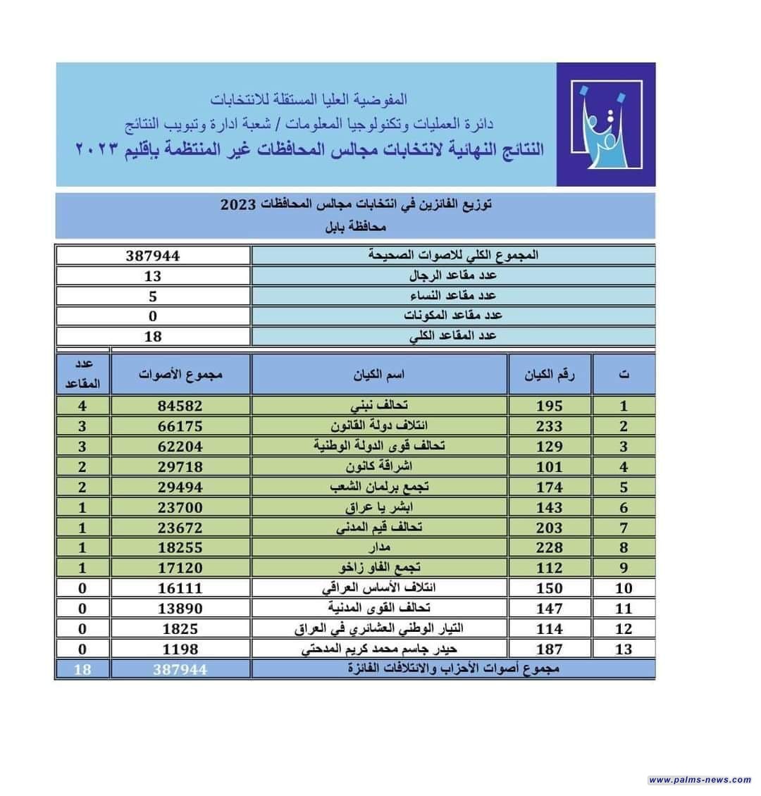 مفوضية الانتخابات تعلن النتائج النهائية لانتخابات مجالس المحافظات بنسبة تصويت بلغت (6) ملايين ونصف ناخباً