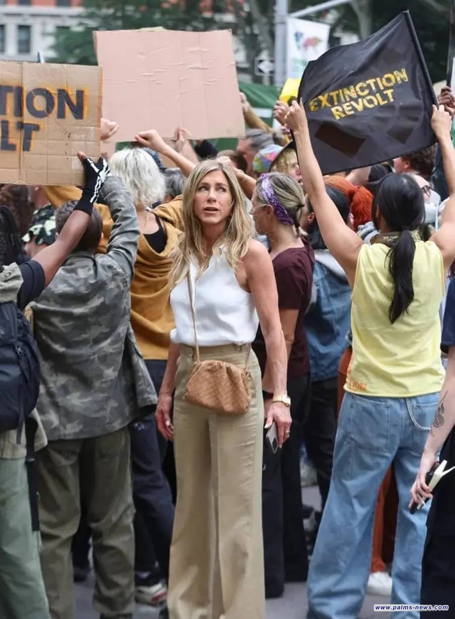 وفي ما بدا أنه مشهد احتجاجي، أصبحت أنيستون التي تلعب دور "أليكس ليفي" غاضبةً جداً ومغطاة بالكامل بسائل أسود، من دون أن يتبين ما إذا كان الزيت الذي رماه عليها المتظاهر جزءاً من المشهد، أم فعلاً مستقلاً!