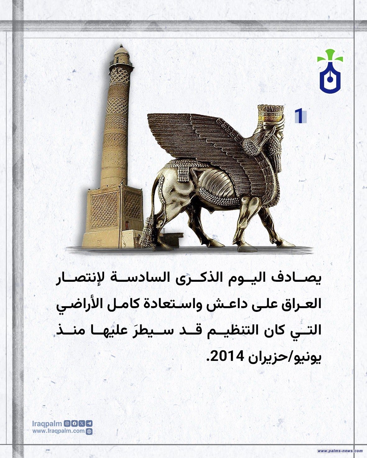 نخيل عراقي تهنئ بيوم النصر العراقي وتترحم على أرواح الشهداء وتتمنى الشفاء العاجل للجرحى والعودة للنازحين.. #يوم_النصر #نخيل_عراقي_للابداع #الموصل #نخيل_نيوز