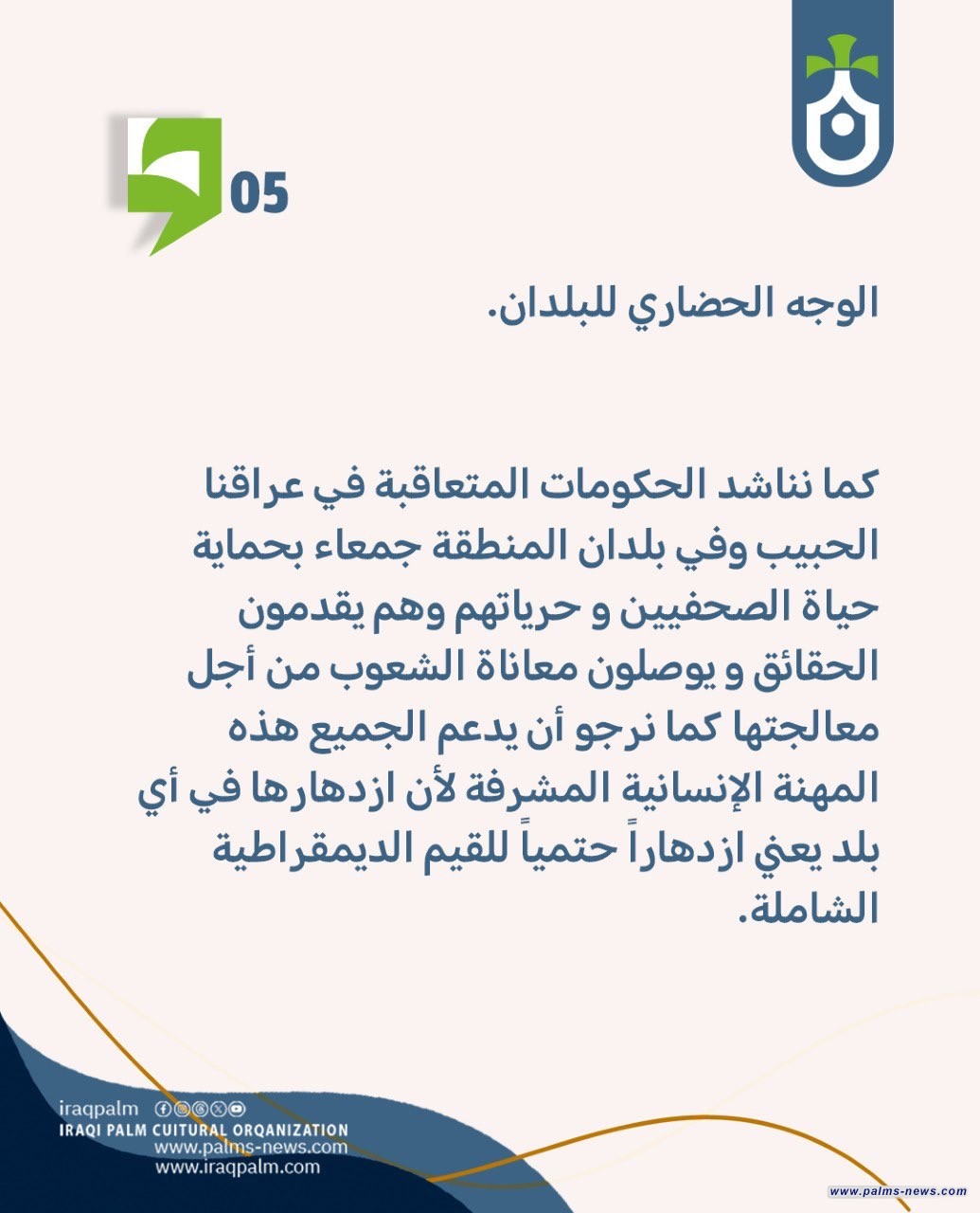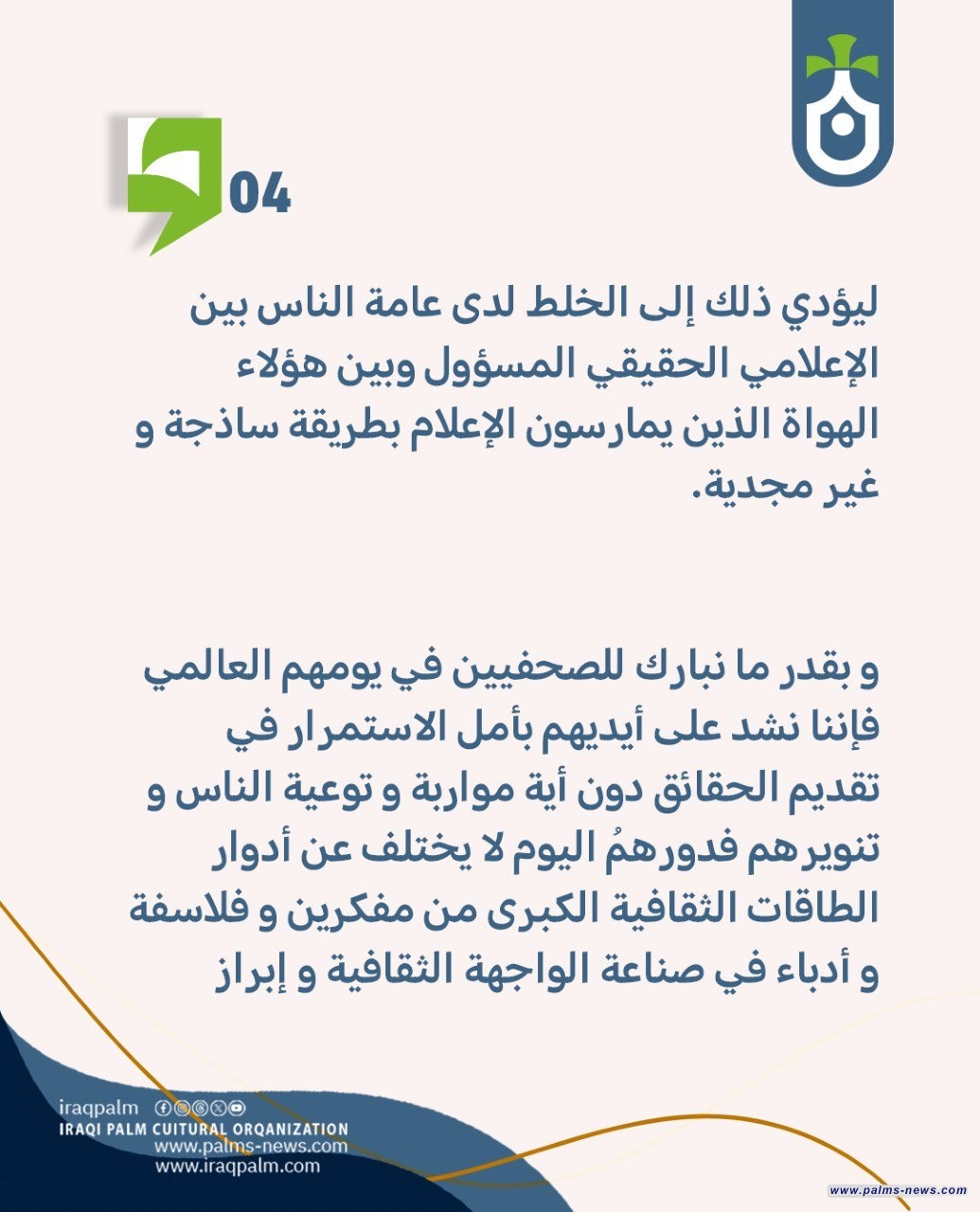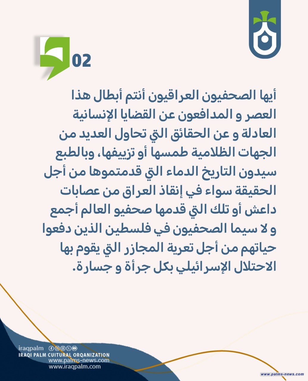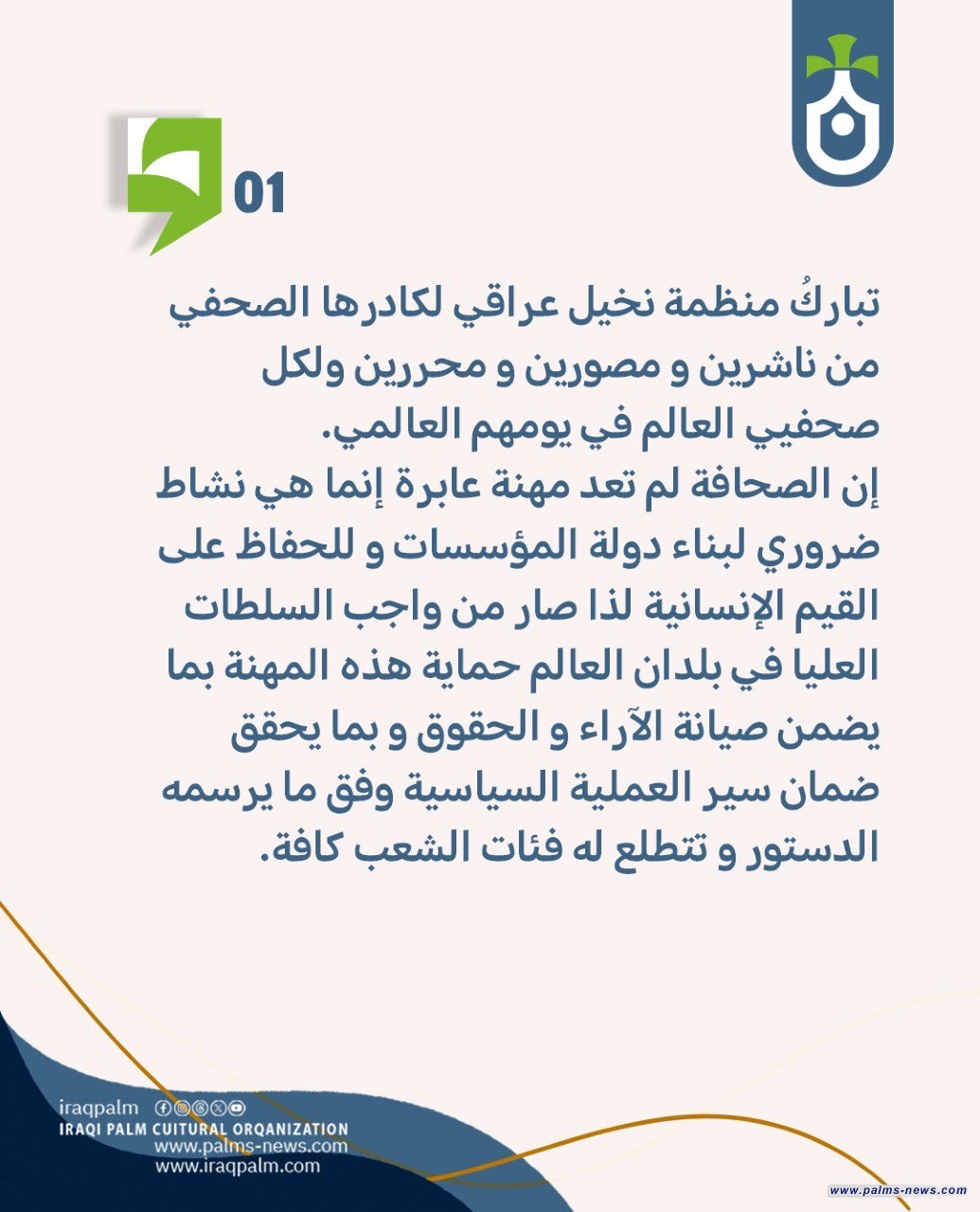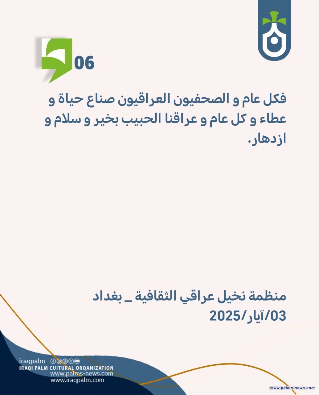 تباركُ منظمة نخيل عراقي لكادرها الصحفي من ناشرين و مصورين و محررين ولكل صحفيي العالم في يومهم العالمي.